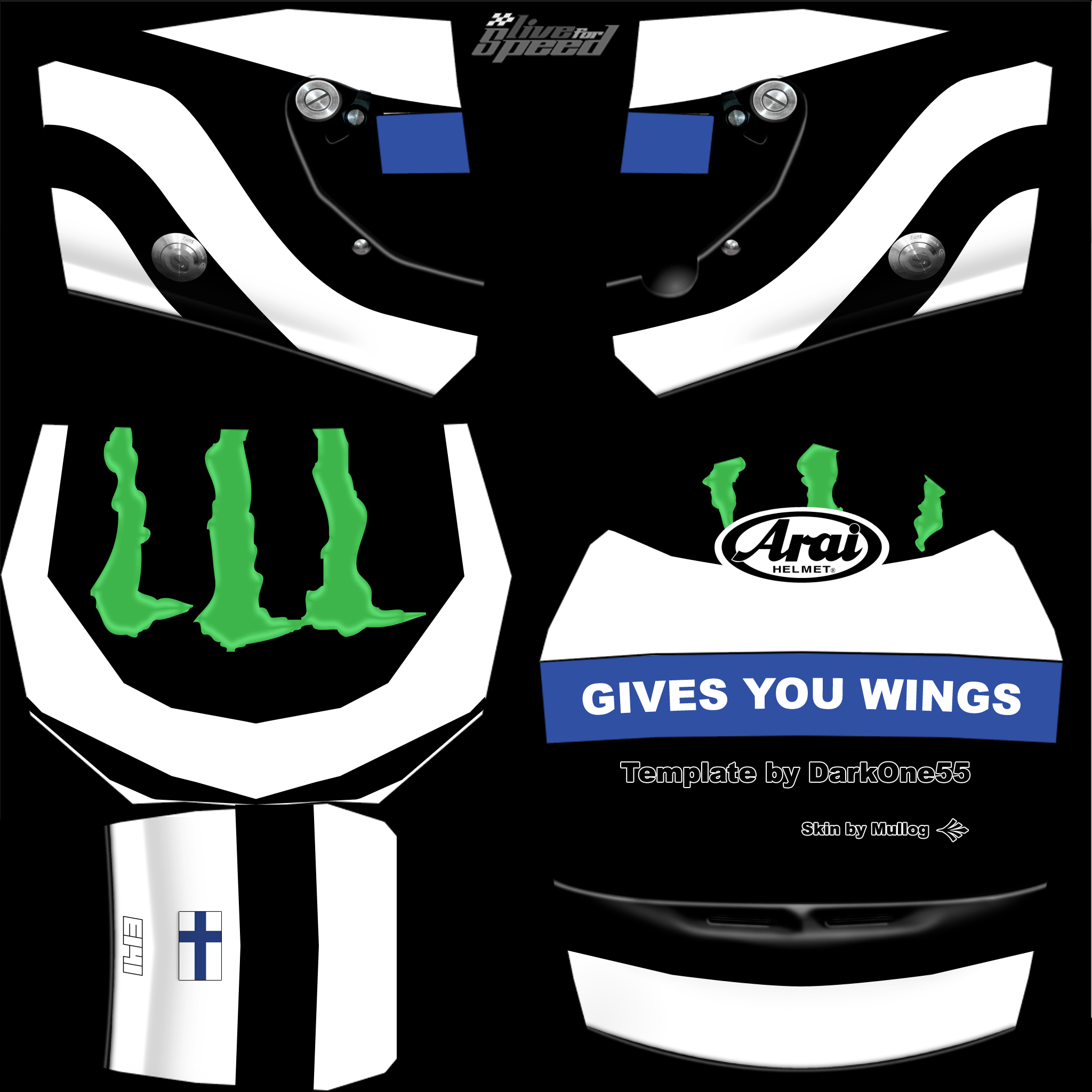 and a "Gives you wings" visor sticker plzzthe helmet looks like this
