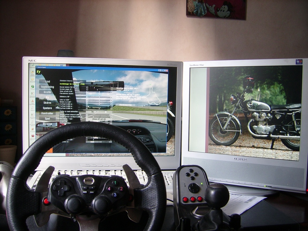 In LFS settings I chose by accident the wrong number of monitors (2-1-1) at the multi monitor setup so my view is now pointing away from the menu so I can't see it on my screen and restore it.