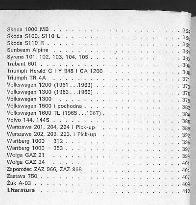 If anyone needs any technical specifications on cars on the list PM me. They include basic car and engine informatiom + cylinder size , piston size, valve opening and closing times, carburator specs, electric specs, suspension sepcs including susp. type, camber, caster angles etc., tires types, original pressures in the tyres, brake and few others.