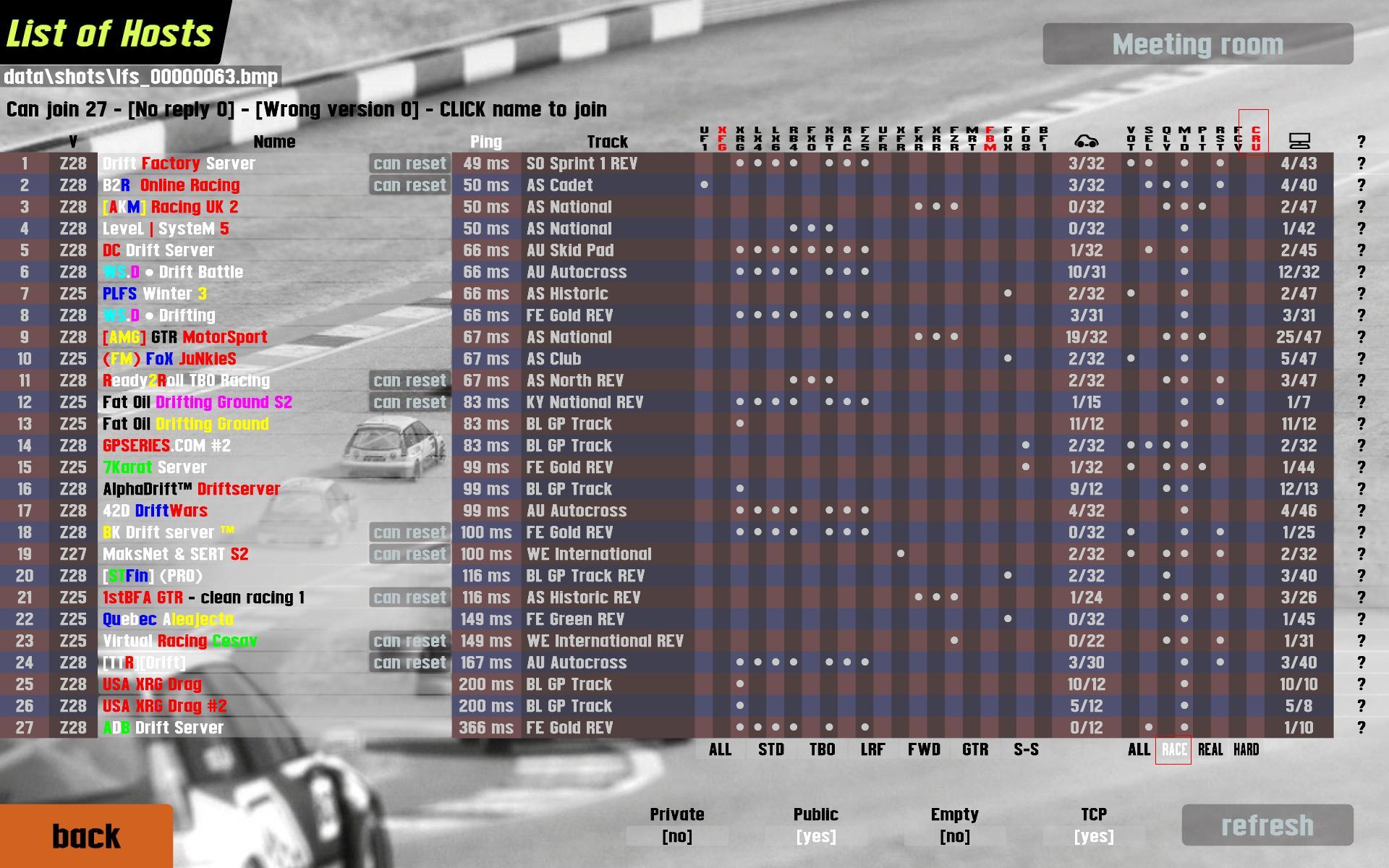 Before i stopped playing lfs, was i driving pretty much on a cruise server called something like 'TC citydriving Montana', and now i just can't find this server anymore.