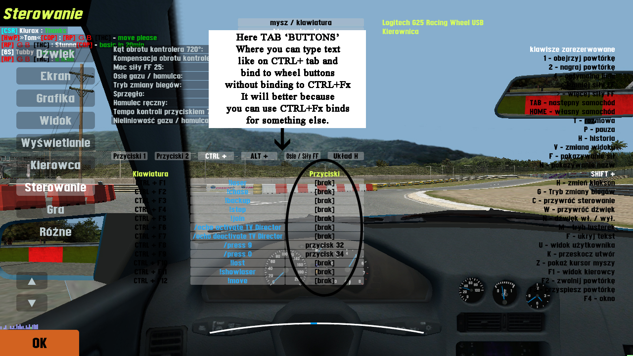I know, there's an option to bind wheel with CTRL+Fx button but maybe you can do tab for binding wheel buttons to every text/command. I know about Logitech Profiler but sometimes Profiler get's crazzy and bind's didn't work(ALT+TAB and SHIFT+F4 can kill binds very fast). See pictures because my English isn't so good and I know it's very hard to understand me
