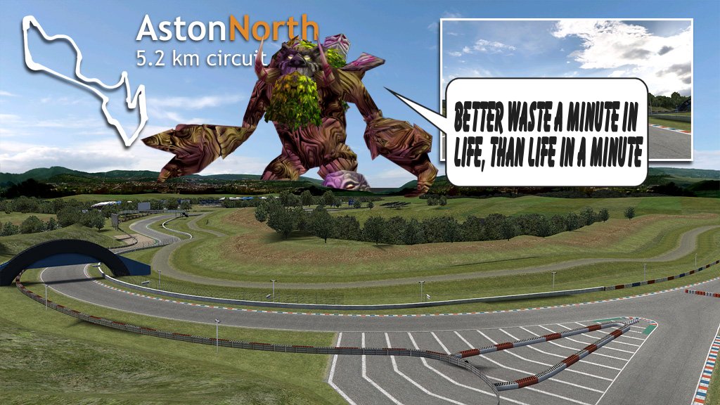 2. The point is somewhere at the word "minute". Maybe it has something to do with the laptimes on blackwood? the FO8 for example has a WR of almost exactly one minute (if biggie was just a bit faster :P )