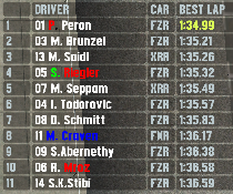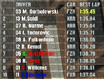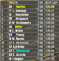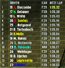 - Car 16 lost its fastest laptime of the session due to chat in server. It was the only laptime set due to a telepit on course.