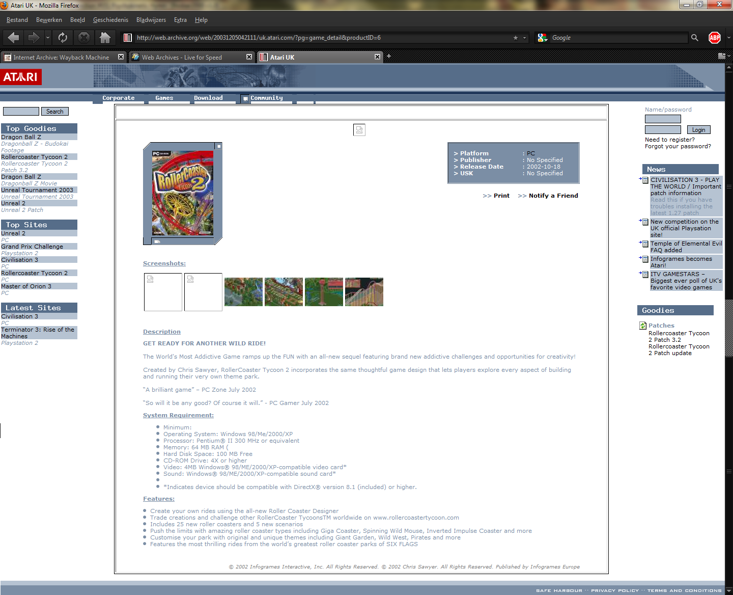 Could somebody take a couple of screenshots of some old game websites for me? I'm at college and the site is blocked, but need some screenshots as our handin date is today :<