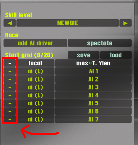 If ou mean, how to take them out of starting grid, than you need to press the "-" sign by the name of the AI.