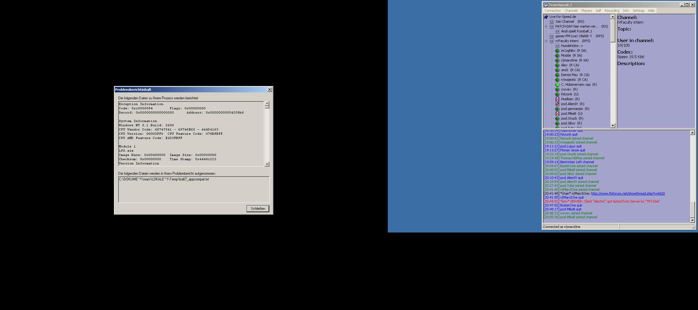 We are experiencing a bug that happens when there is a major crash in T1 alot of guys will "crash to desktop". Again, I don't know why, but this only happened when there was a major crash (7-10+ cars involved) in T1.