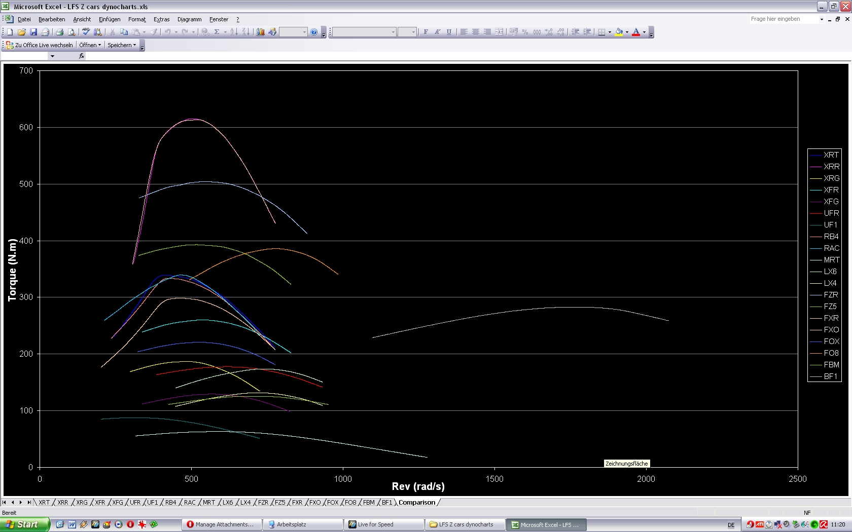 Bob Smith once made graphs for all cars, I added pics of them below. But remember that all engines were altered in that clutch-heat patch after he made them, so I dunno how accurate they are today.