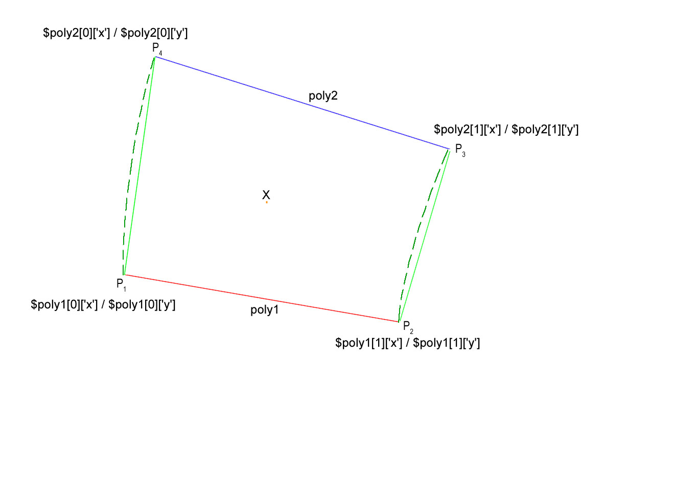 $x31 = $poly1[0]['x'] - $poly2[1]['x'];