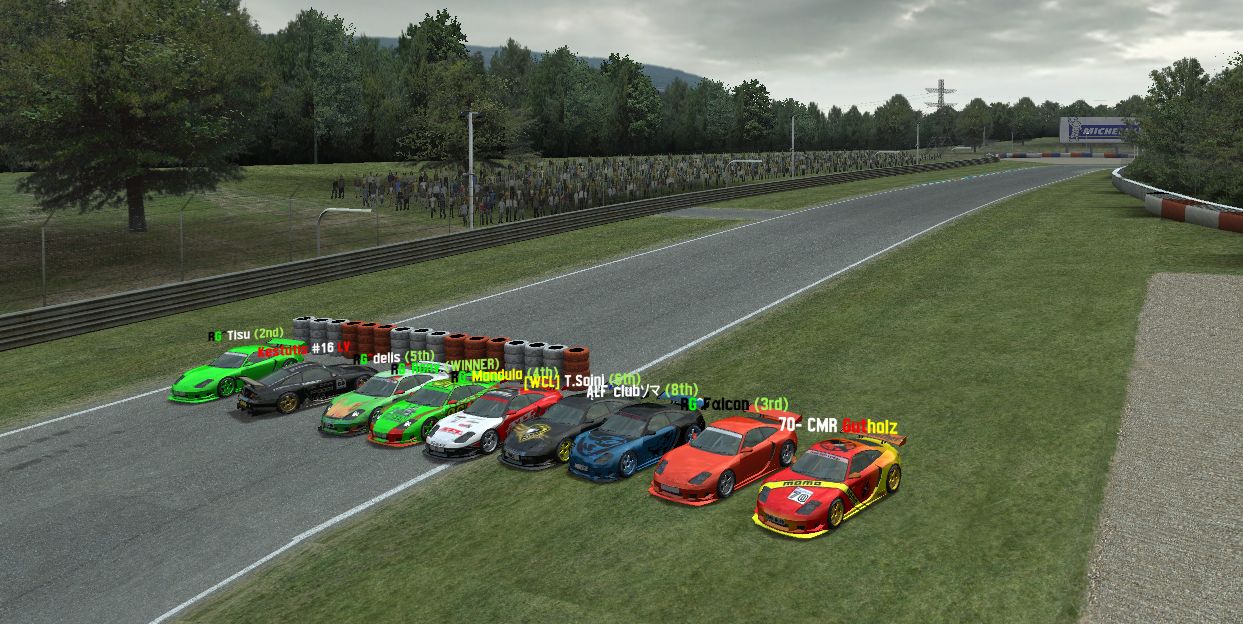 Start of the 5th year of this event turned out to be a home team dominance,as all the honors were taken by them - in qualifying Litro set the best laptime and clinched his 12th pole position. But the big celebrations about a victory had the event organizer Rony,who despite his setup failure managed to keep tyres alive and took his 4th win of RTFRi,he is now the 9th driver with 4 or more wins,it was also his 38th top5 finish. Tisu also kept things cool and passed everyone with tyrefailures and upgraded his best result here from 3rd to 2nd,2nd top5 finish for him,Falcon got involved in 1st lap incident and needed to fix car,still he managed to run a decent race and finished 3rd,which is his 22nd top5 finish,he also set the fastest lap of the race,he now has already 3 such achievements. Despite tyre puncture,Mandula did not stop for a new tyre,he finished 4th,6th top5 finish for him,but Delis change his destoyed tyre and had to settle for 5th place finish after leading first 10 laps,it's his first top5 finish here after having not raced for a while here.