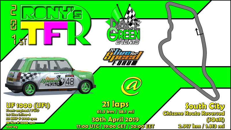 Thank you for your continued support by joining these events - it is still worth the effort to host events and competition is still high around here (I personally haven't been able to win a race for almost 4 years here) and quite many will confirm that it's getting hard to score a top5 position regulary. So let's go for the anniversary 300th RTFR!