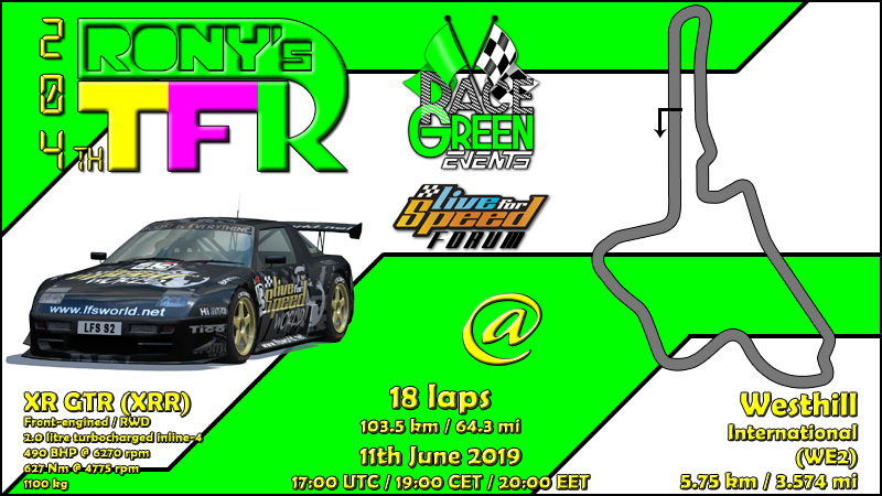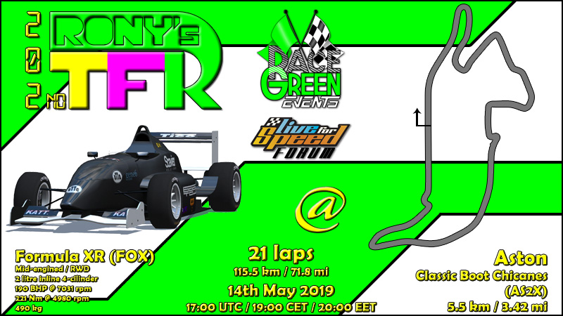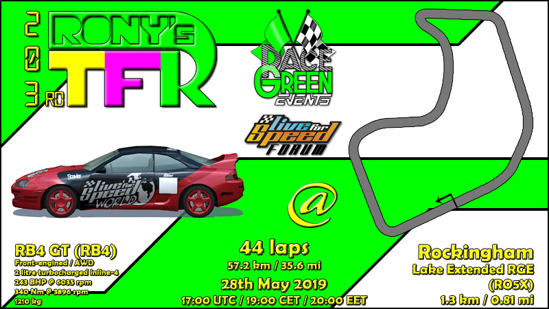 RTFR again goes for a 2 week break,then one of the street legal cars will make it's return,but until then there are 2 other races scheduled from Race Green Events side - already this sunday the 3rd round of STARL will be run in the shortest Fern Bay configuration Club,but 2 days later the next RTFR XL will feature another 70+min XRT race - this time at Rockingham ISSC configuration.