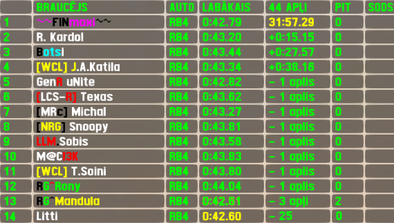 Last race won by: Botsi (2 in row for Botsi / 5 in row for Finland)