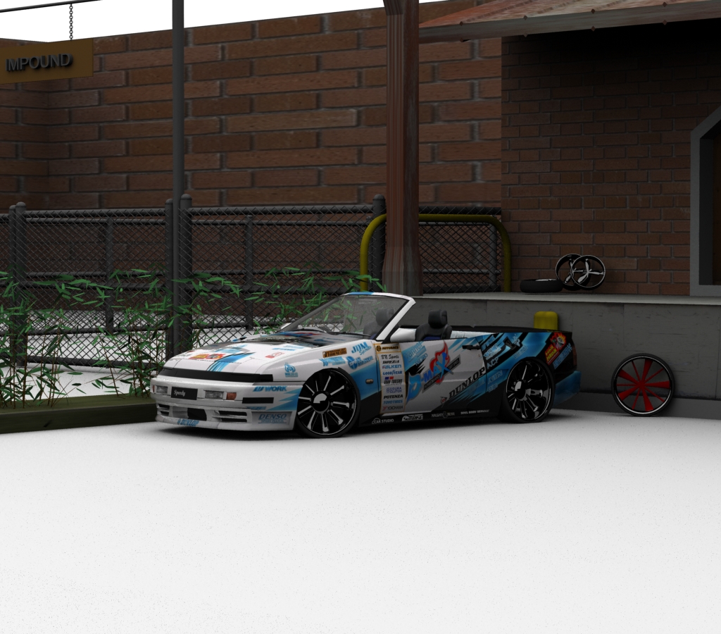 The bricks on the far wall look so big, which making the car looks like a minature. Increase the brick texture tiling in keeping with the wall on the house on the right. The render itself is ok.
