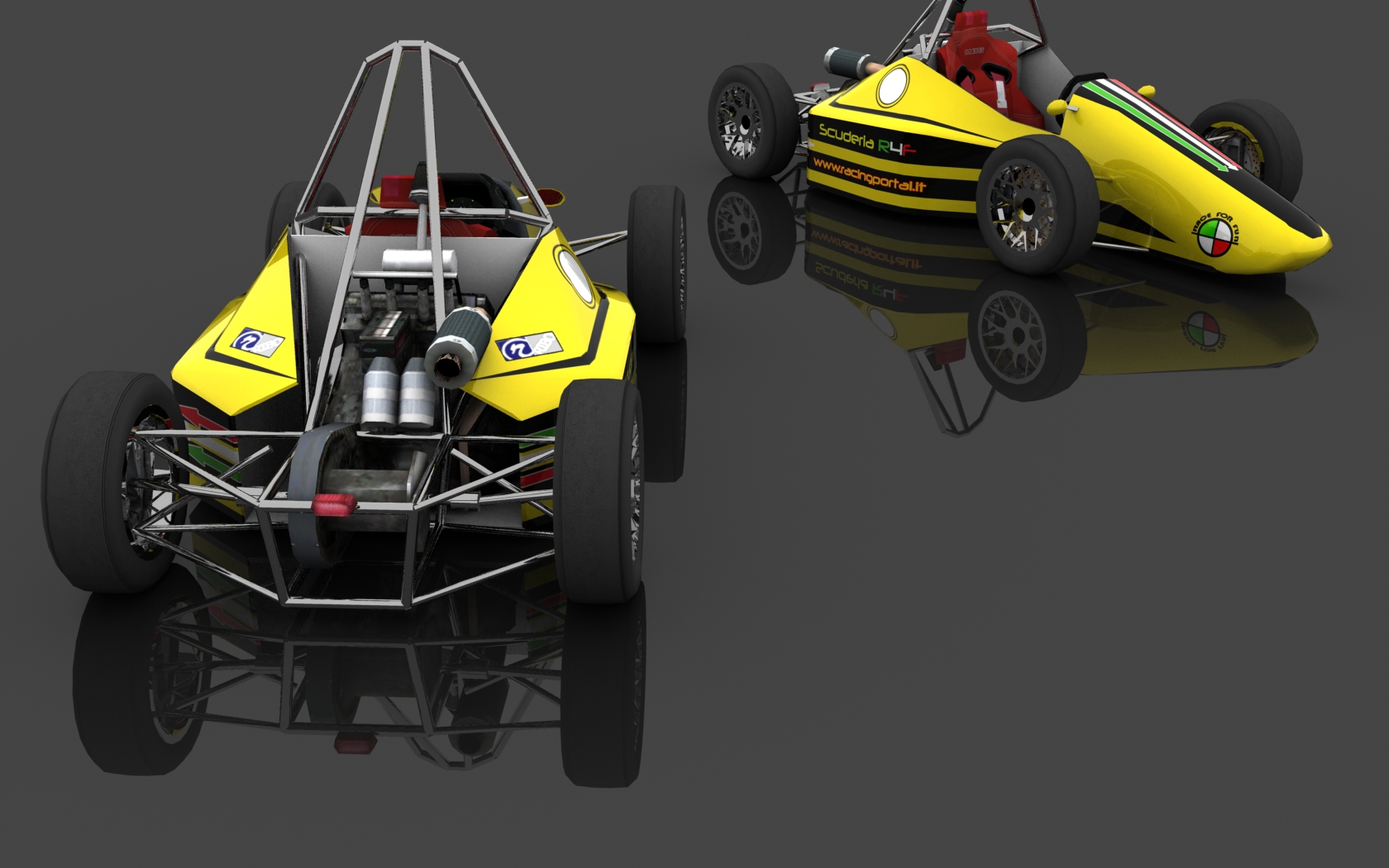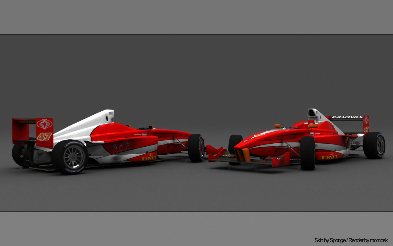 Quote from Sponge :Would someone render this skin for me? If possible with the car twice in one shot from a front and rear angle and normal wheels/tires (those grooved F1 tires look crap on the FBM). Also with a normal background, no fancy scenes and in 1280 x 800 please Thanks alot! (sorry for the low-res skinfile) done Attached images