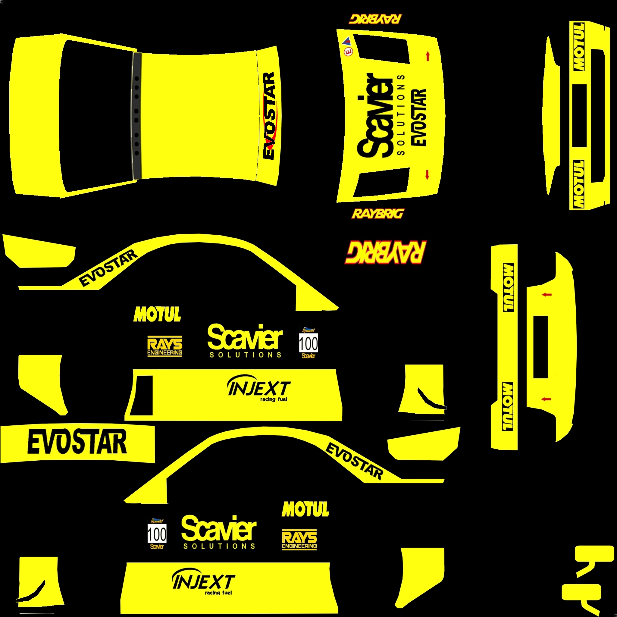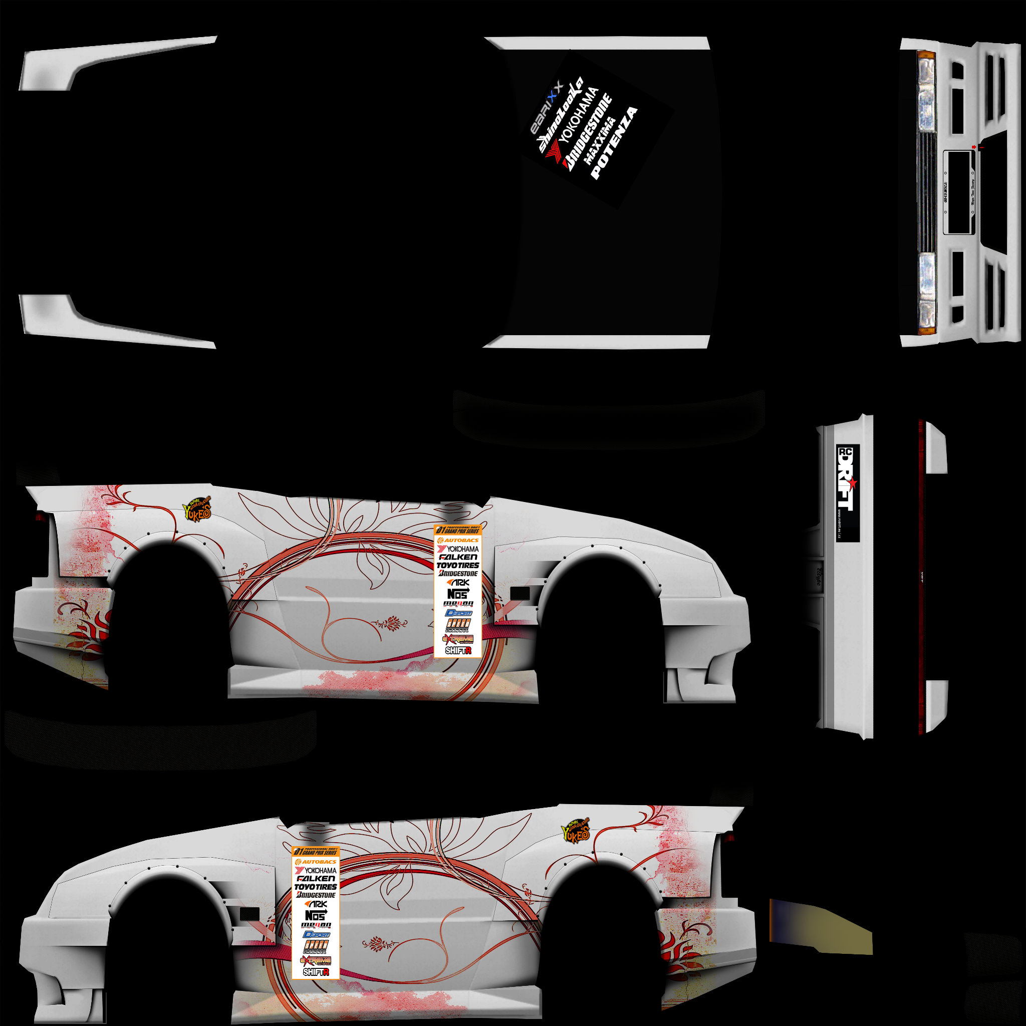 Would someone render this skin for me? If possible with the car twice in one shot from a front and rear angle and normal wheels/tires (those grooved F1 tires look crap on the FBM). Also with a normal background, no fancy scenes and in 1280 x 800 please Thanks alot! (sorry for the low-res skinfile) Attached images