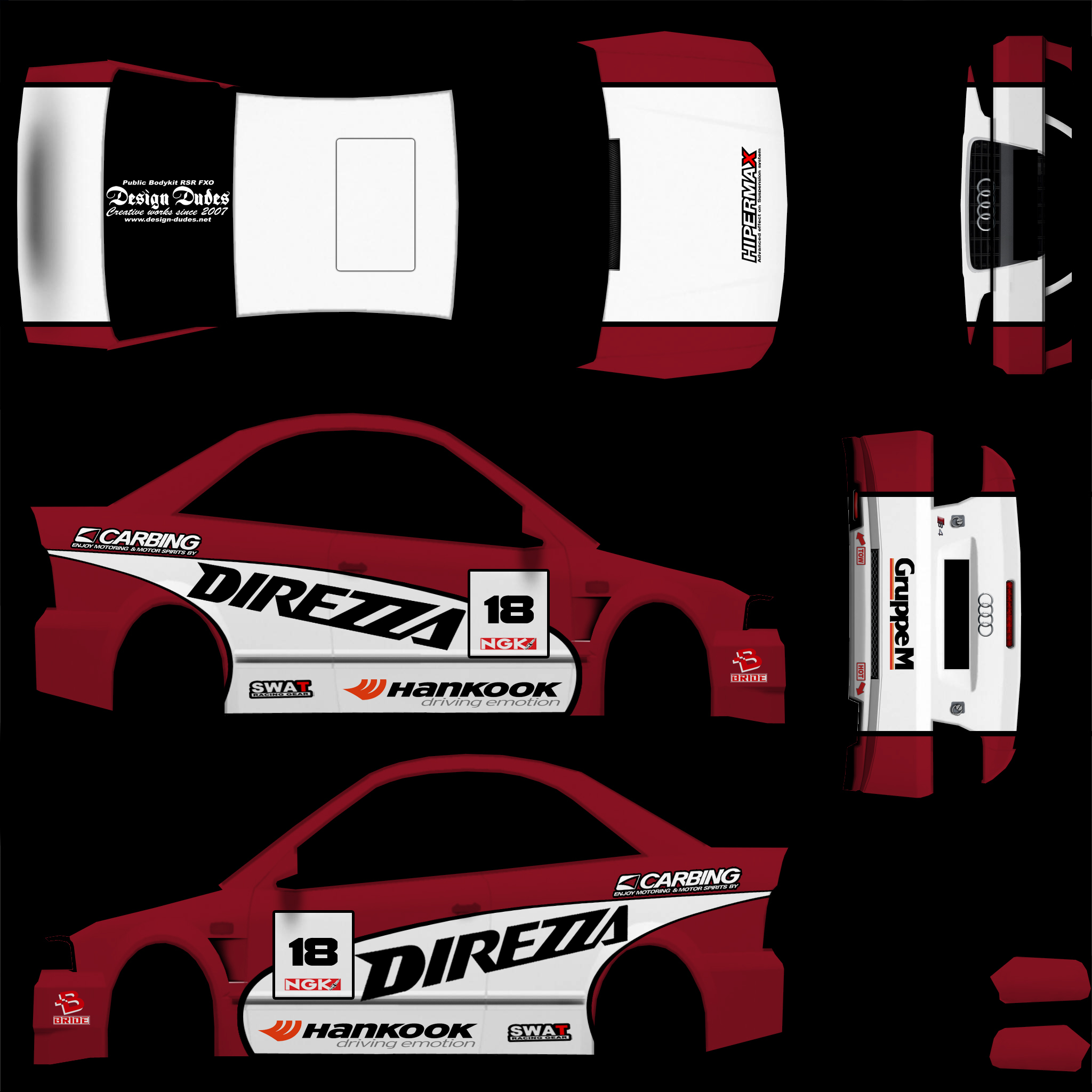 you´re joking? I watched it in the viewer. There are more mistakes then i show you on your skin... Look at the back. one stripe is to long (right side of back between rearlights) on the right side is a white corner in the stripe and the curves are edged on the skin as on the 3d model of lfs. okay 2 are on edges of the car but the rest.... Your transitions are also not the best...Sometimes you have different colors between the transition(with the red) and they are cutted.