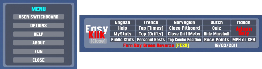 I've just finished updating my large EasyKlik menu into more discreet menu system, which I've also done as a separate add-on for LFSLapper.