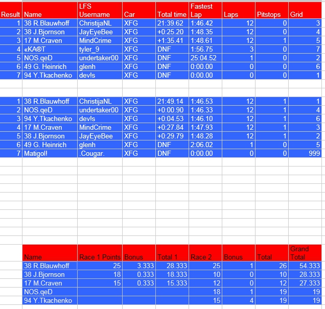 There will be an XFG mini series held during June and July. A test race on June 30 with 4 points paying events held during the 4 subsequent weeks on Thursday. Each event will have 15 minutes qualifying followed by 2 roughly 20 minute races, with the second race requiring a pitstop. The rules can be found here. More information can be found here. Signups and discussion in this thread or here. The server is Thursday Night XFG.