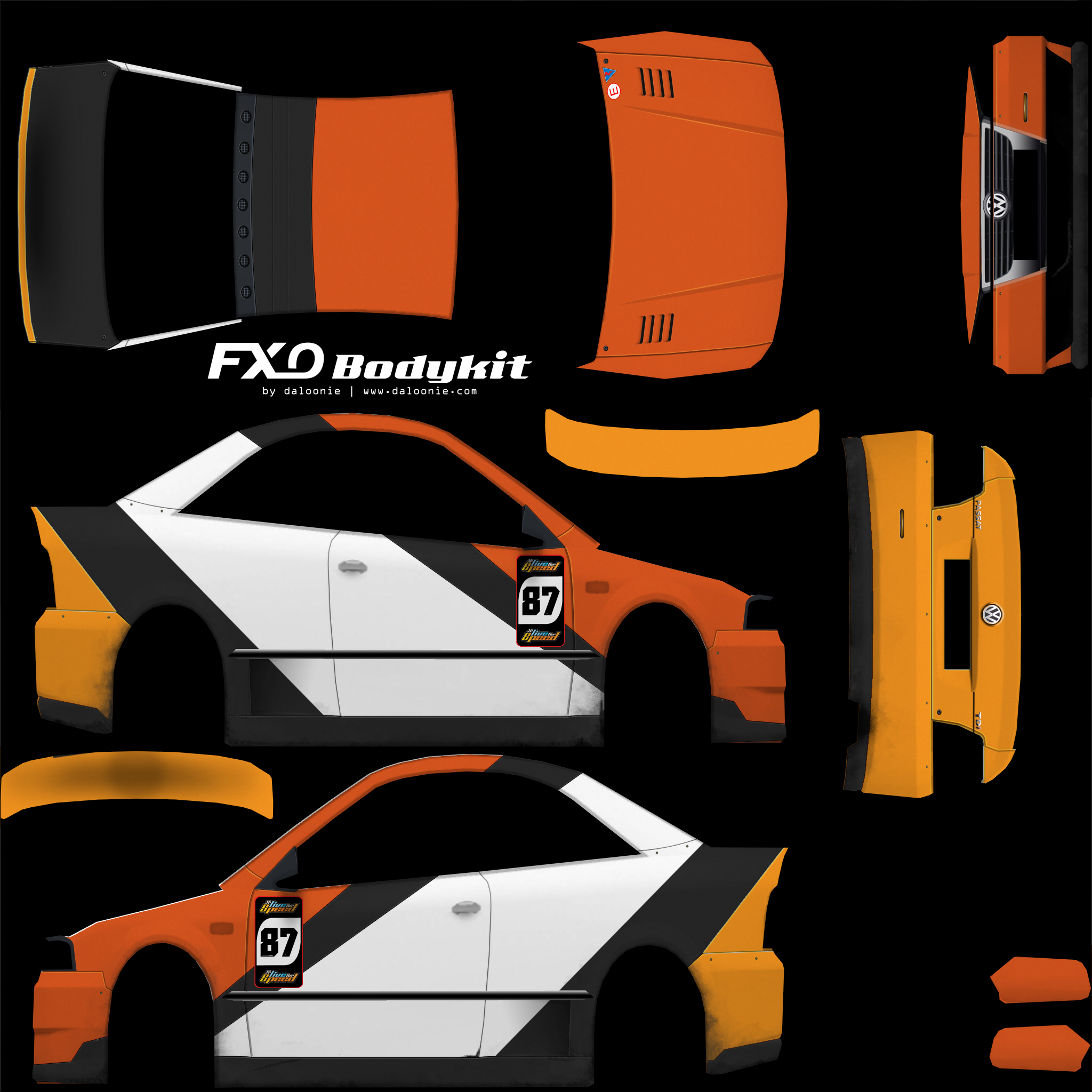 I think that radiator grill in front and vw logos isn't looks good. FXO looks like 5th generation civic and we may not destroy this. Anyway I always add bodykits in the end when design is finished.