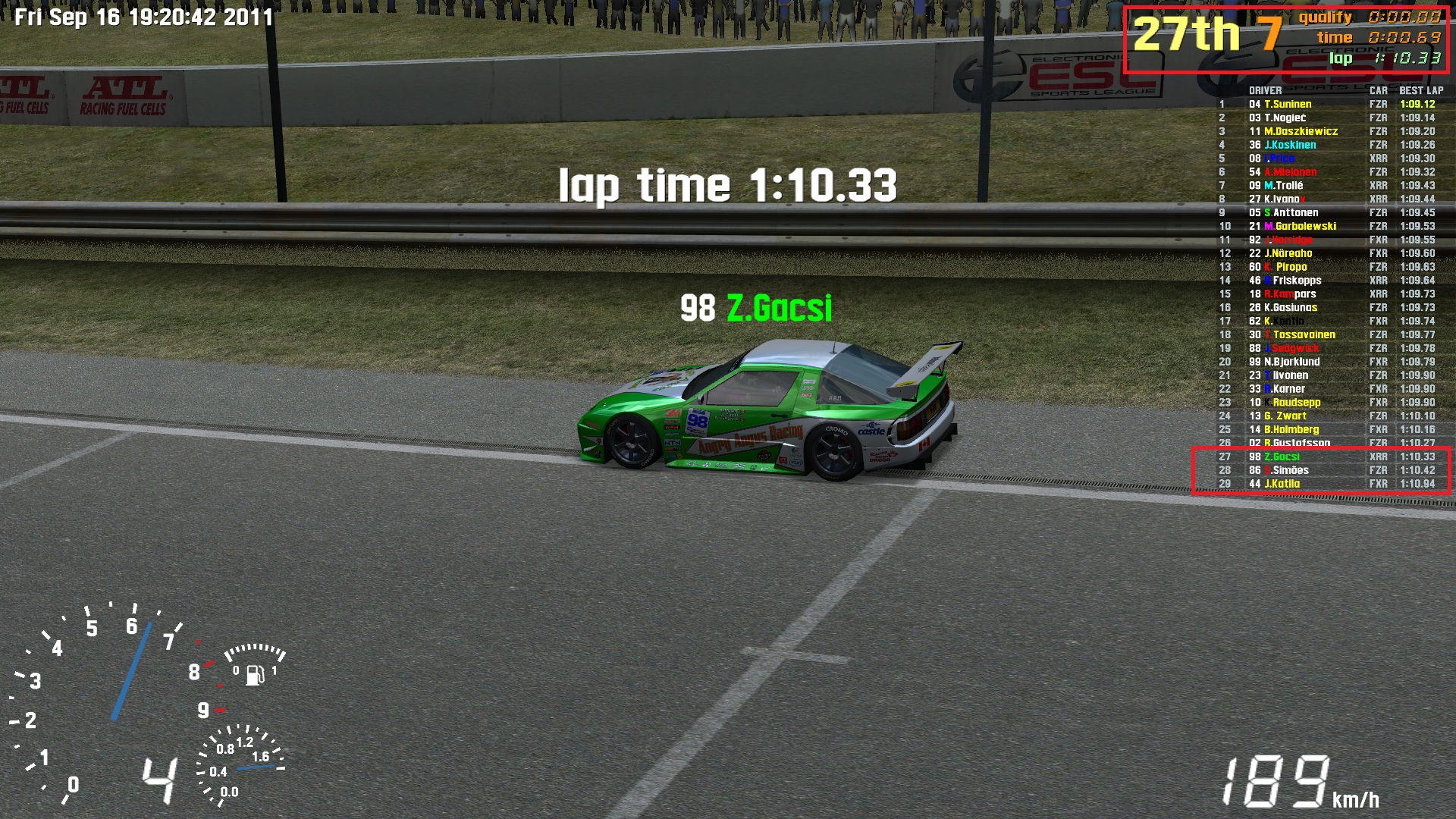 After finishing the race, please slow below racing speeds after turn 1 and proceed around into pit lane. Select any open garage stall and pull in.