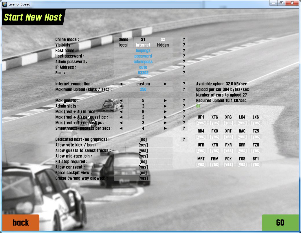 Then, mysteriously, some three years or so back, after an upgrade patch the option disappeared and we got "timed out" and on asking for help, were directed to explore the mysteries of "port forwarding". That proved beyond us. So, unfortunately, our head to head battles were ended unless we found a deserted track on Multiplayer which allowed the Fox cars.