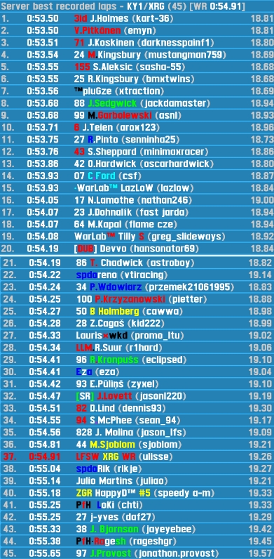 Seeing as the server in use for prequal was down at 04:00 UTC when prequal was intended to end, I could not get to the Airio !top list to generate results.