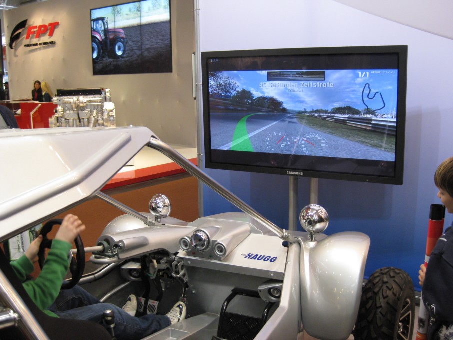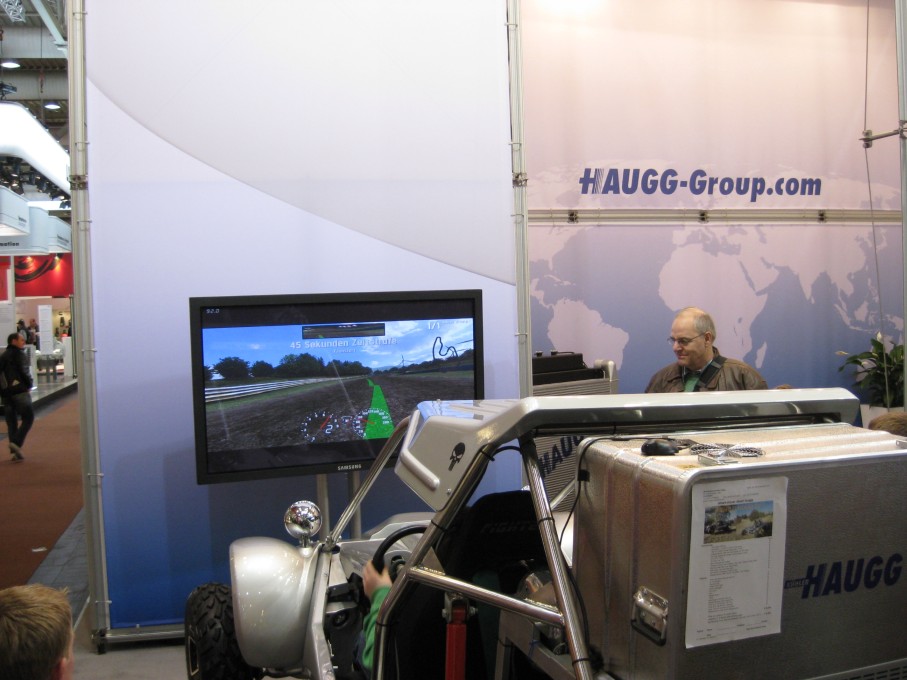 Went to the Agritechnica exposition today, and was surprised to find LFS runnning on a sort of motion simulator (a buggy with full toyota running gear on stilts