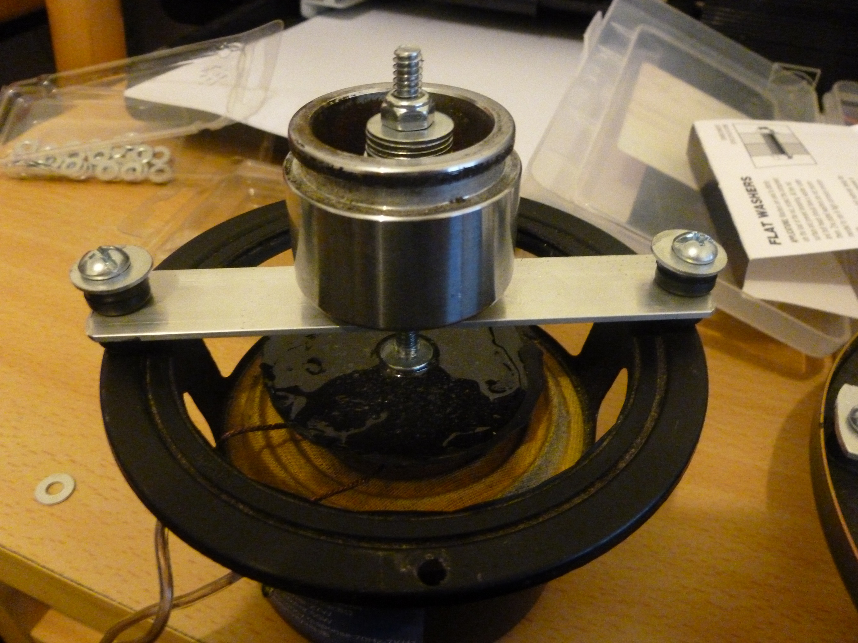 Although the 4" one is a higher power speaker the bigger. 6"? one actually works better. the 4" one is too loud, probably because I have rubber washers on all sides, but if I don't use rubber washers, it doesn't vibrate enough.
