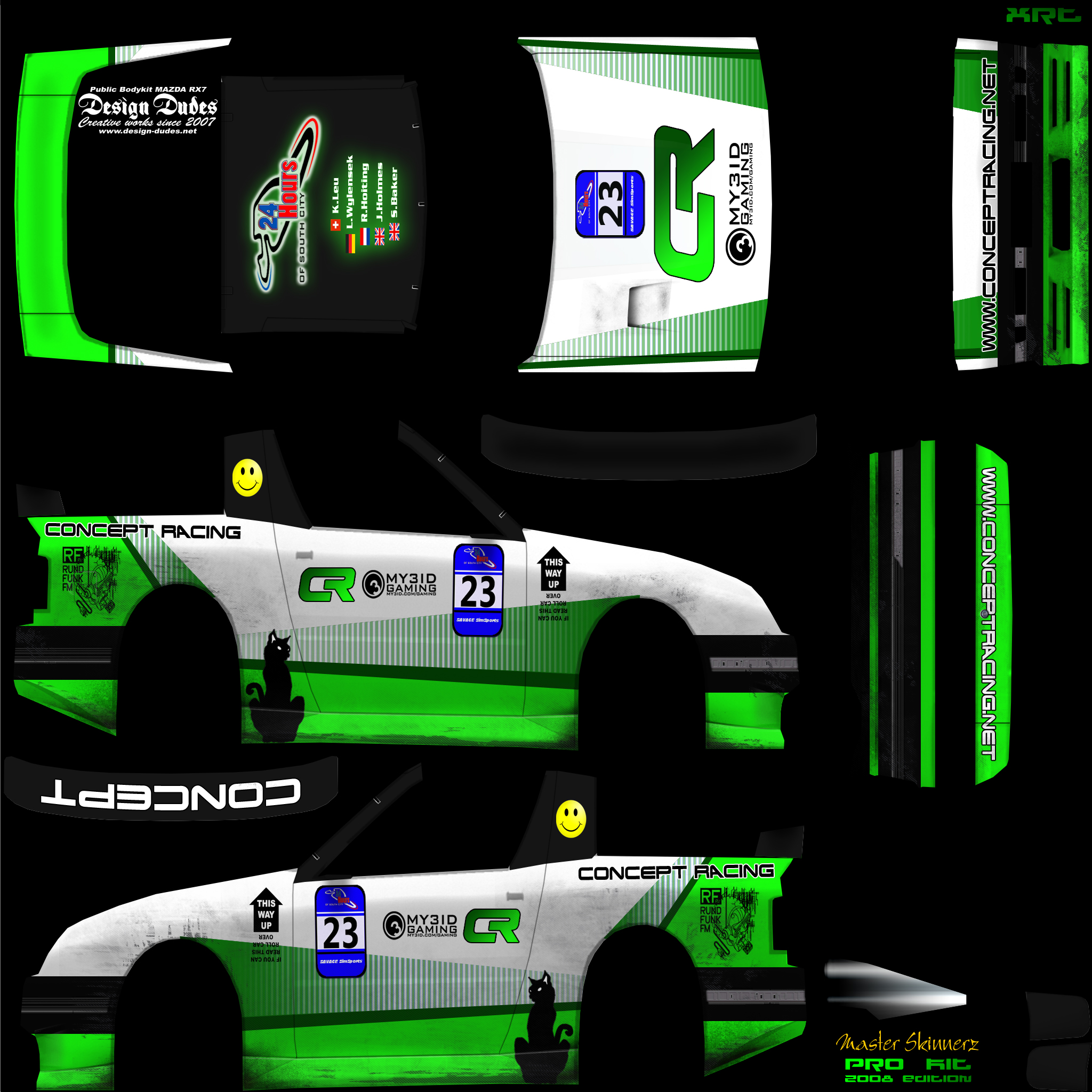 The skin pack for the race can be found here: https://www.dropbox.com/s/oncy5it94wy5trt/SO24H_skinpack.rar Extract the files to the data/skins_dds folder.