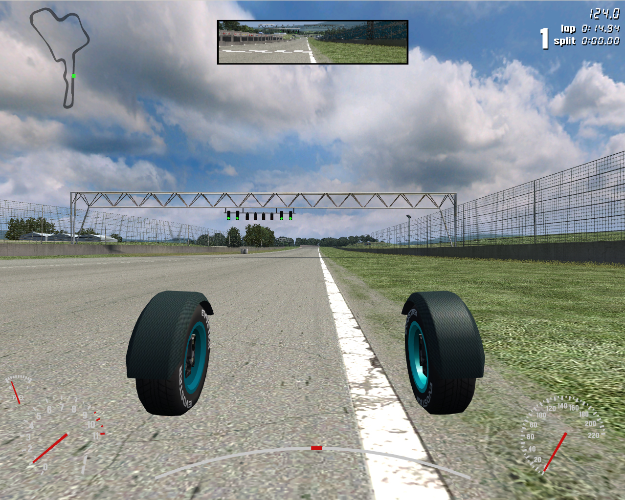 I took a shot for you from the wheel cam... The grass still looks flat, but that's mostly because there's not real finished edge yet (I'm working on that, but looks worse than what I have atm). I'm considering doubling the grass texture in size, so the grass strands get smaller, but I think this looks fine for now.