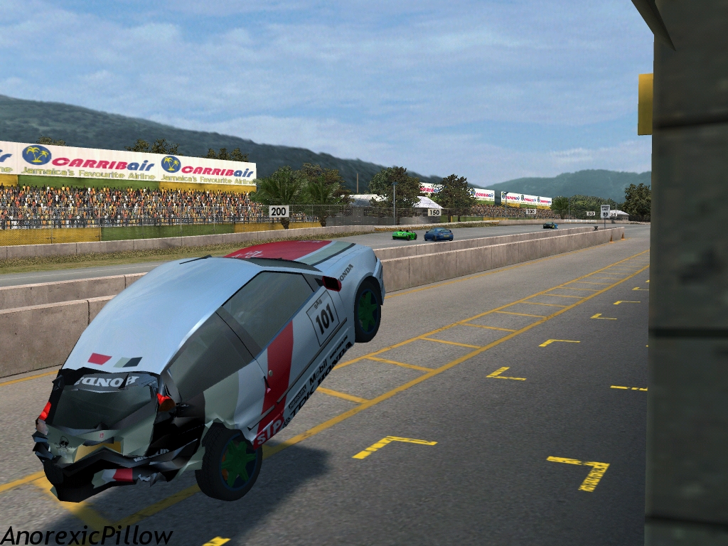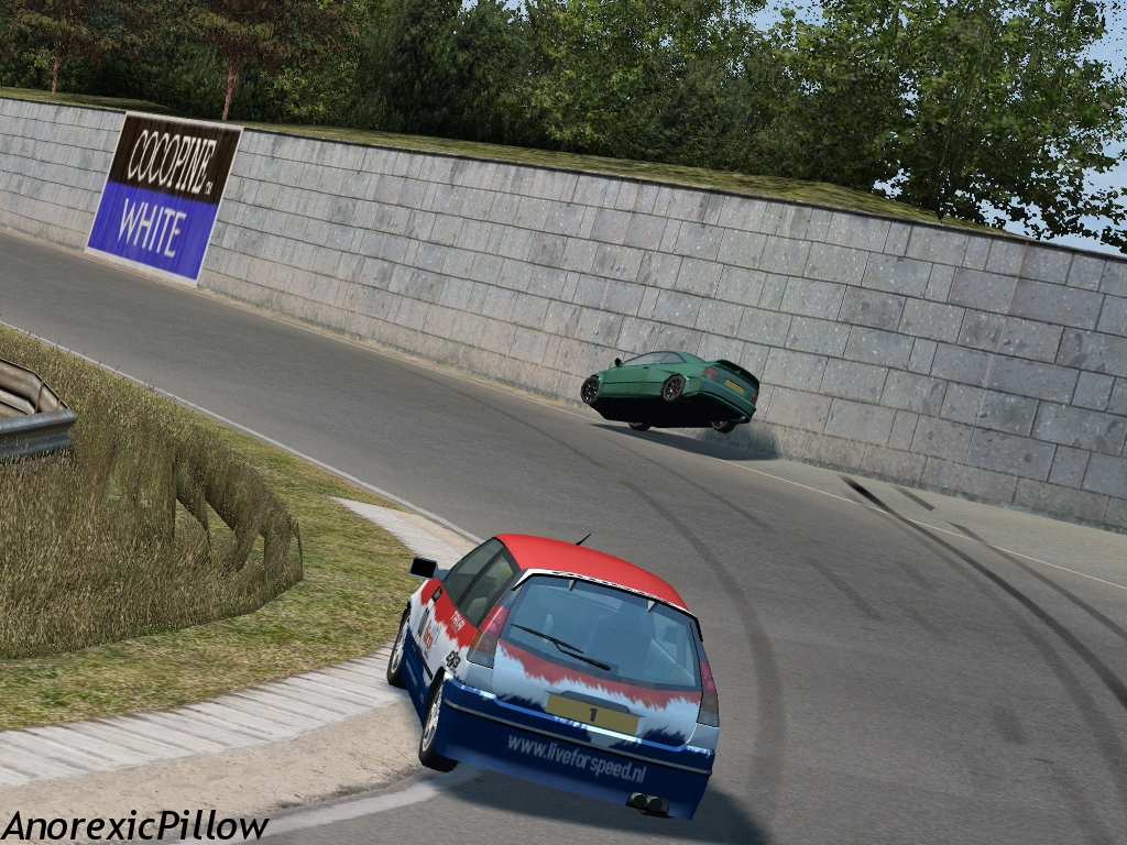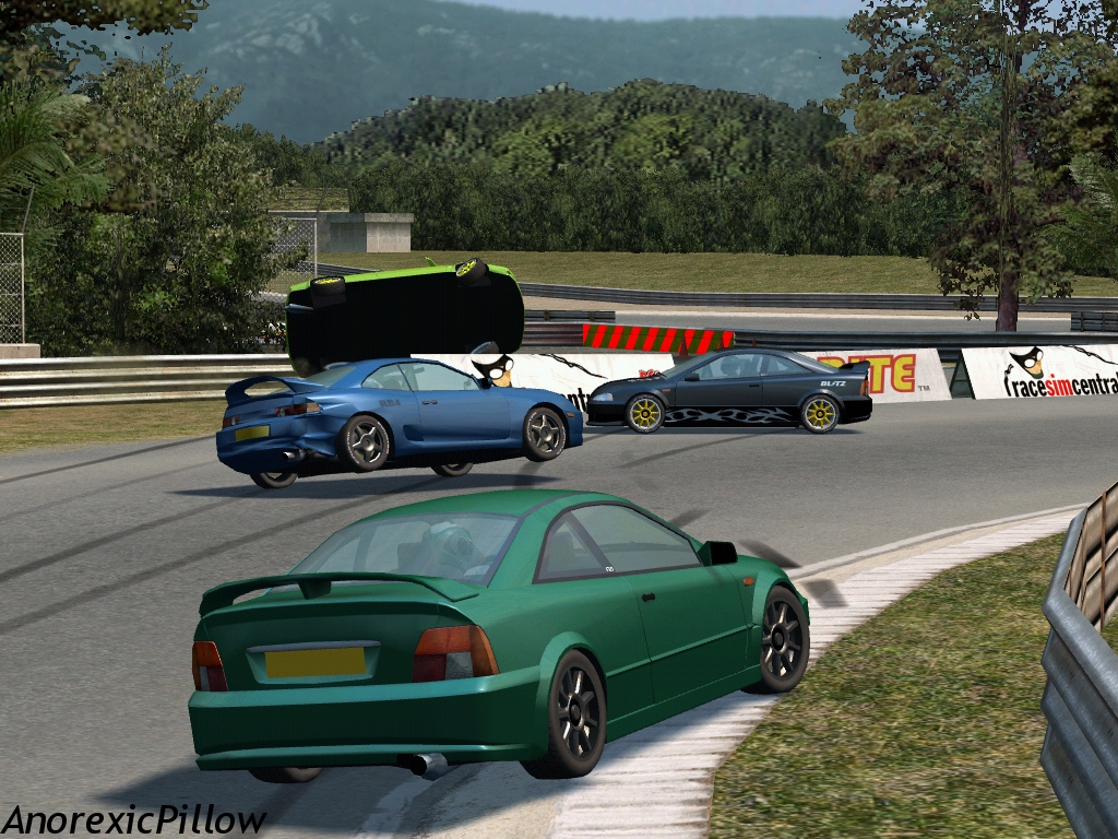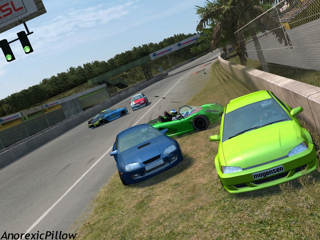 I can use photoshop and create reasonable results, but after looking around here I'm wondering what someone else can do with this screenshot. (Want to use it as my BG.) My attempt involved trying to make it look photorealistic, but I'm just not that familiar with that aspect of photoshop. (Shot is me protecting my lead at the start of the LOTA league sprint race at SO Long going around the outside using every inch of room I could.)