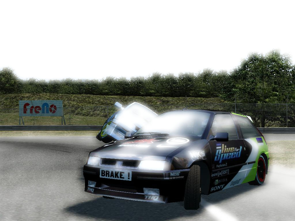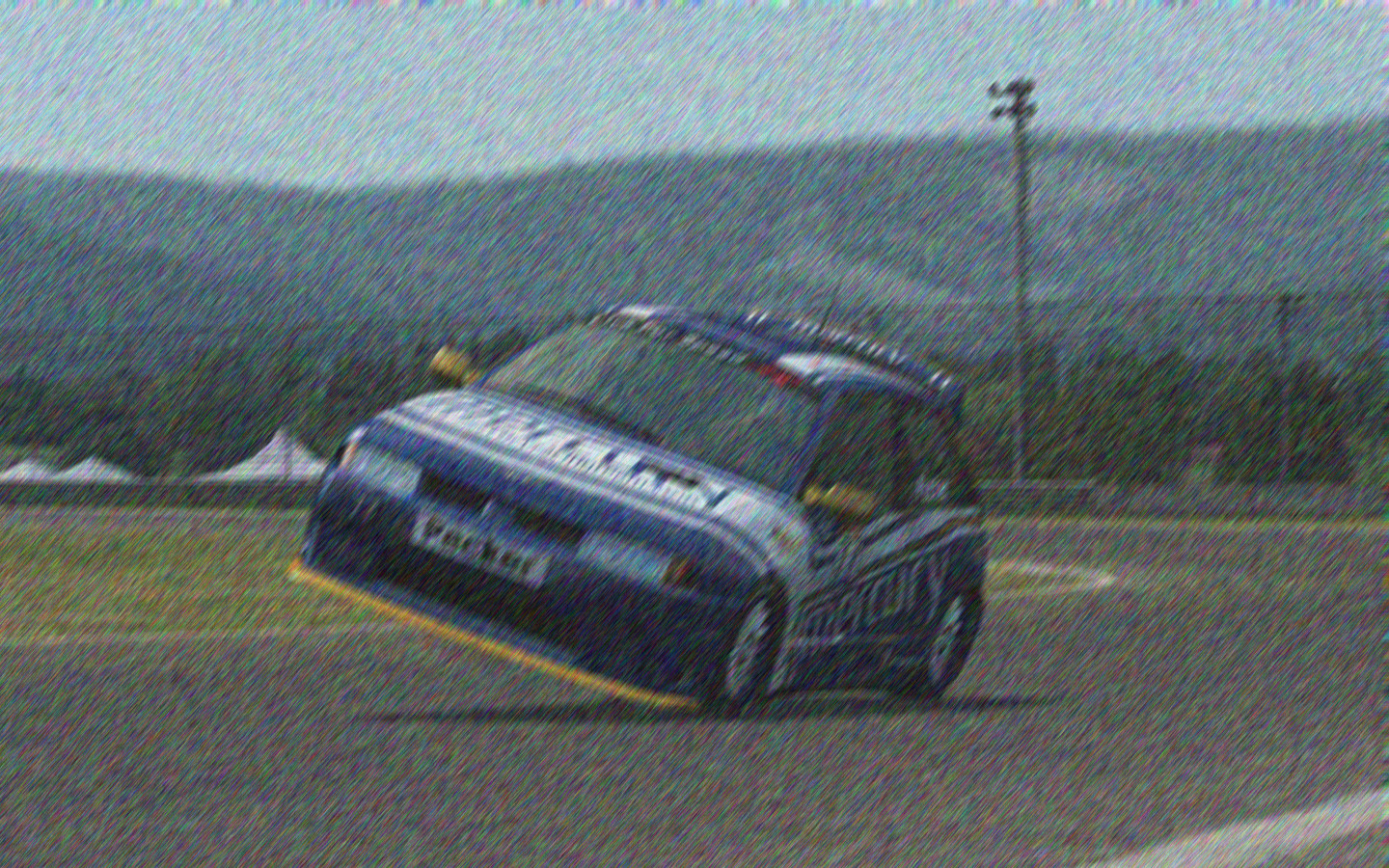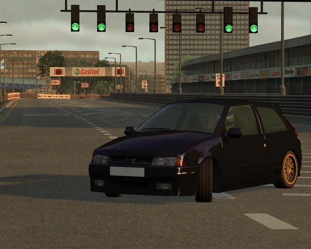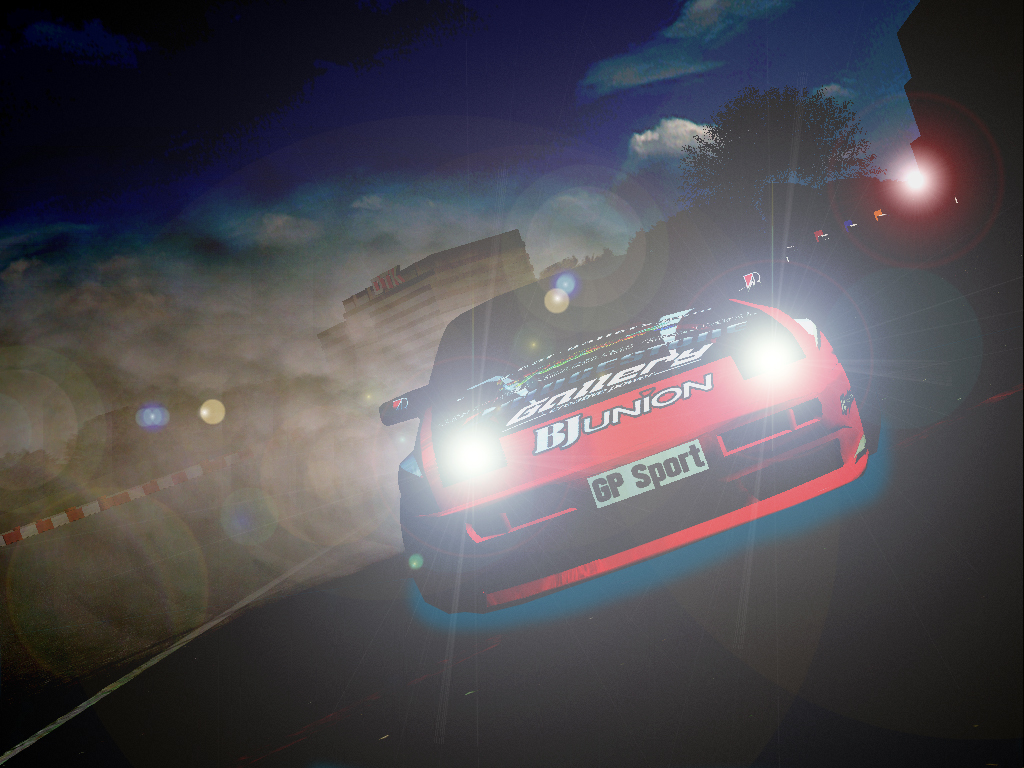 Could anyone attempt to add better rain effects (my attempt is pretty poor) and some lights on the car aswell a floodlight effect for the light in the background.