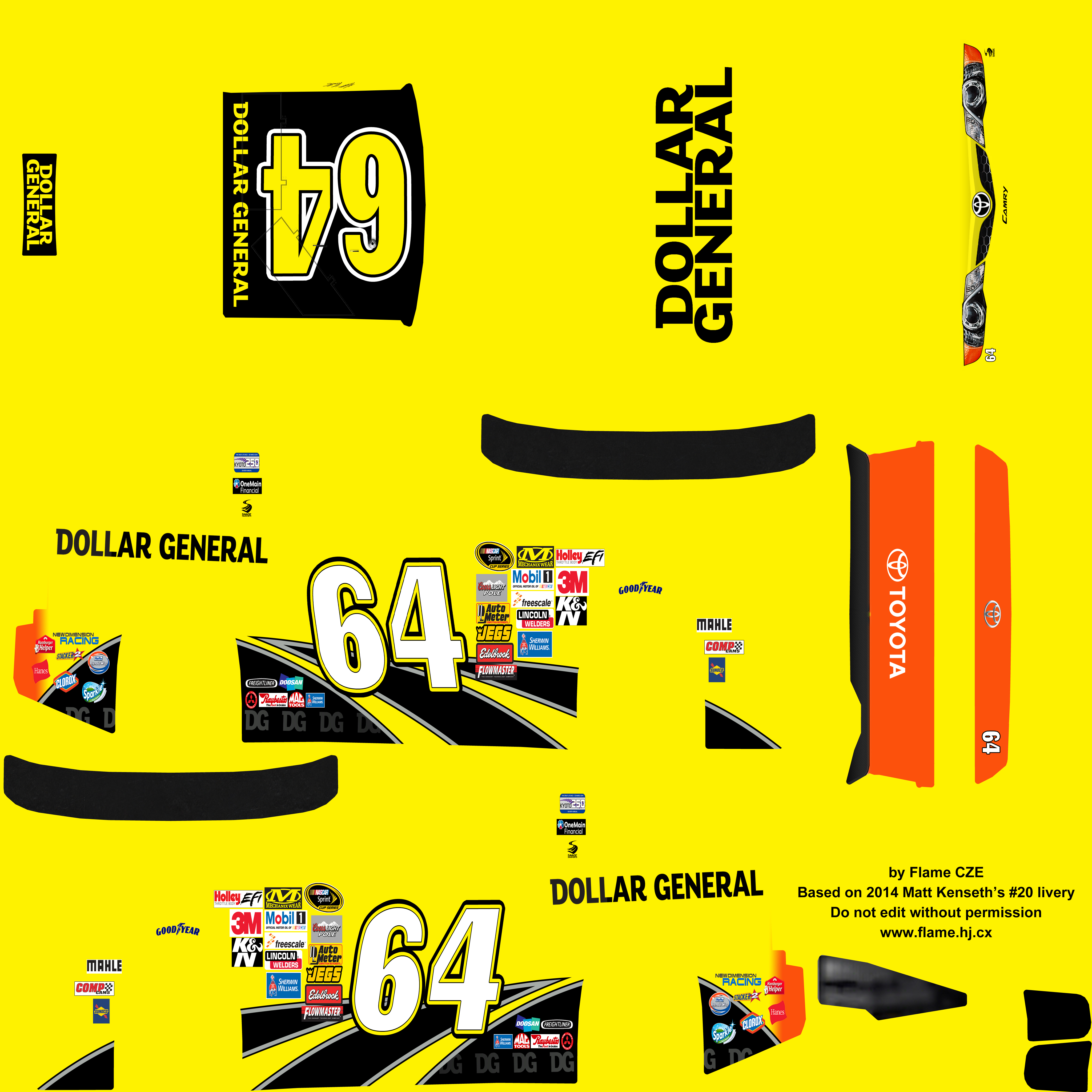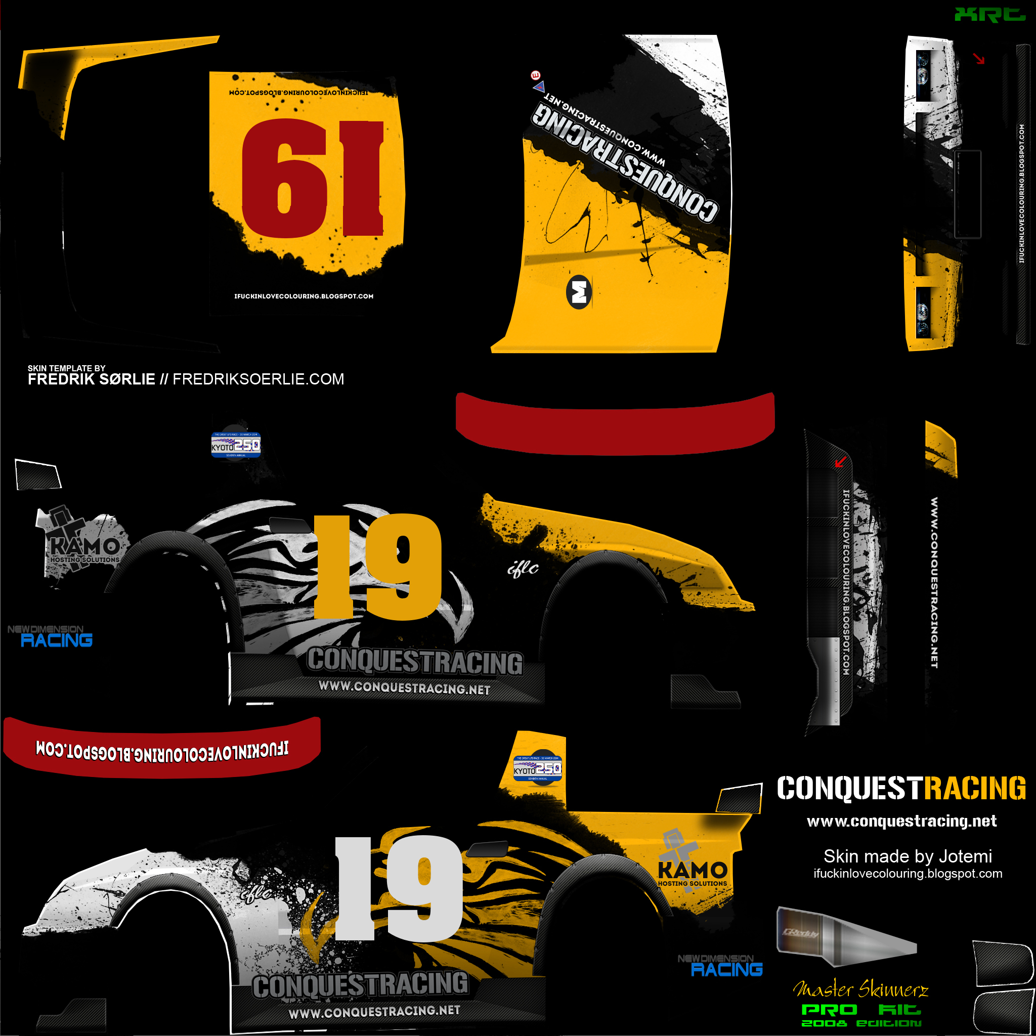 - Yellow areas - B posts / B pillars; the Kyoto 250 2014 logo should be placed in this area.