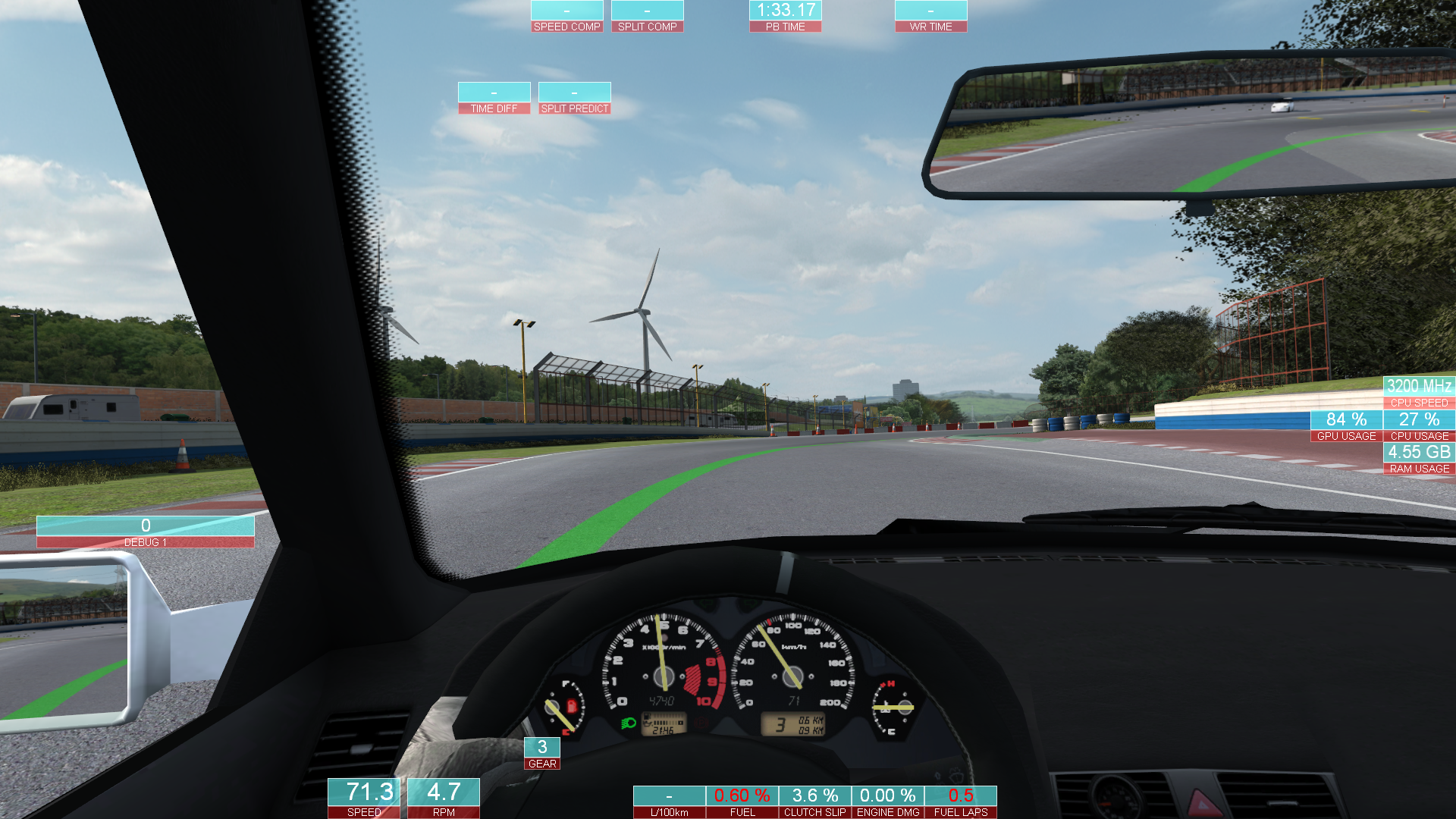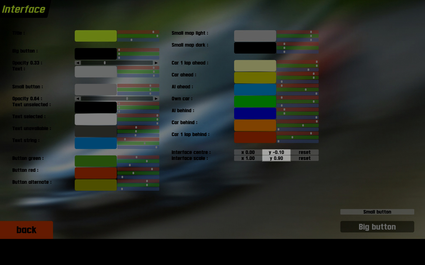 Also, apparently it looks like you're able to draw transparent stuff O_o. Then why don't you make car radar opacity configurable? I had to make it really small, otherwise I can't read some important stuff on F12 menu (like amount of fuel to put on pitstop). And by the way, you can make yet another option to reduce radar opacity while in F12 mode.