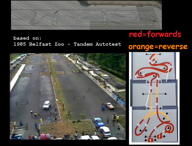 -Autotesting ends with stopping in a "garage" area, mimiced by the white pylons that you should not hit, even if they are behind the finish line.