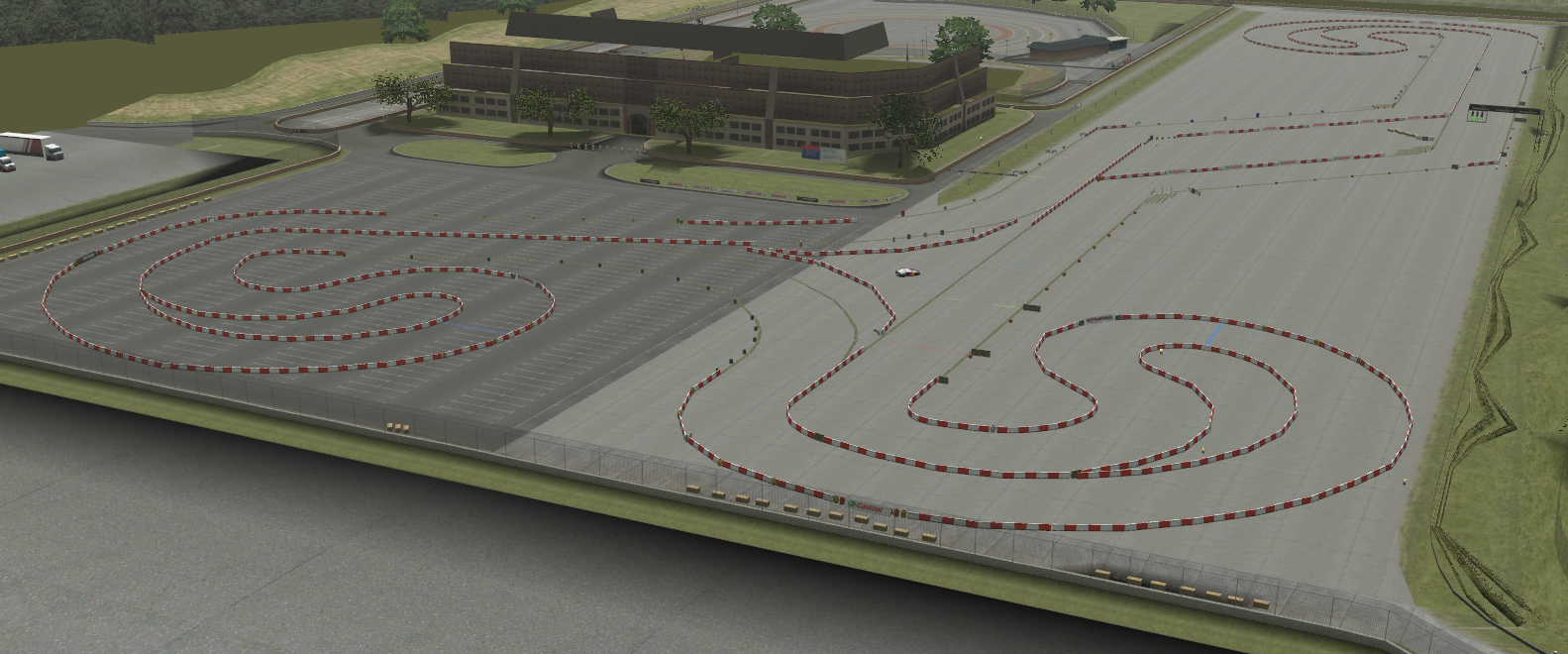 Track is at least 45ft/14m wide, so lots of space, however some of the turns are bit tight, although I have seen some skillful drifters getting round really well.