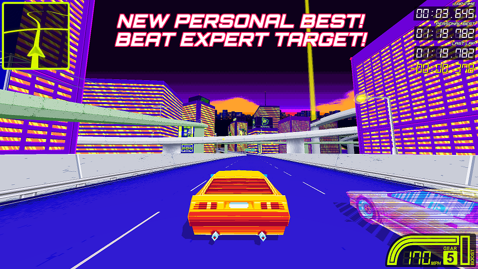 It's a bit annoying not being able to stop the drift by lifting off. The only way to quite drifting is to counter steer just the right amount. If you don't steer enough, you'll continue drifting, if you steer too much, you'll obviously hit the outside wall. Drifting is slow (duh) so to be quick, understeer into the corner, hit a late (and tight) apex so that you can exit the drift early. Some corners, such as the two right hand sweepers near the end of the lap can be taken flat out without drifting.