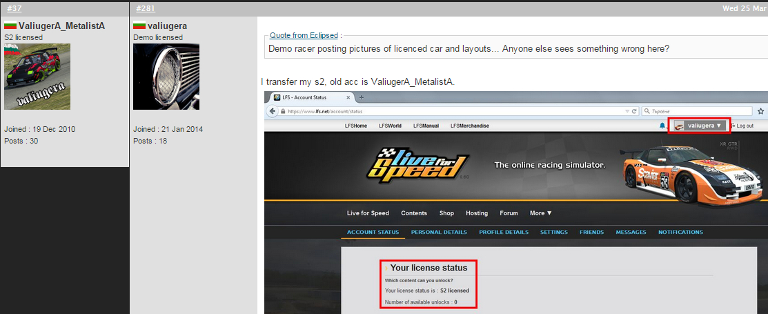 I confirm he is S2 licensed, looks like a forum bug shows Demo licensed below his name.