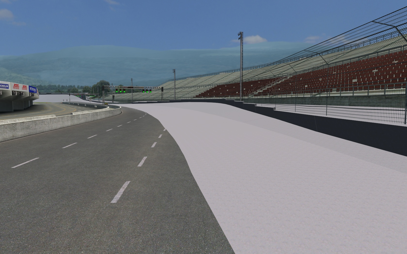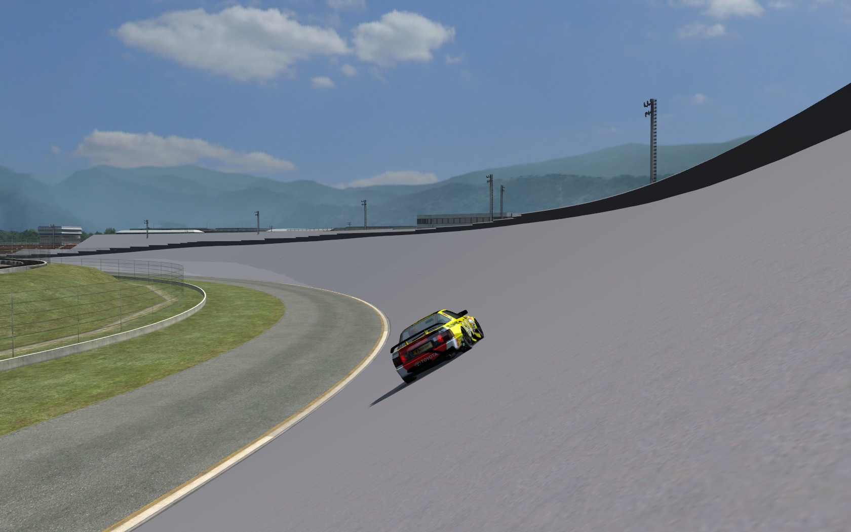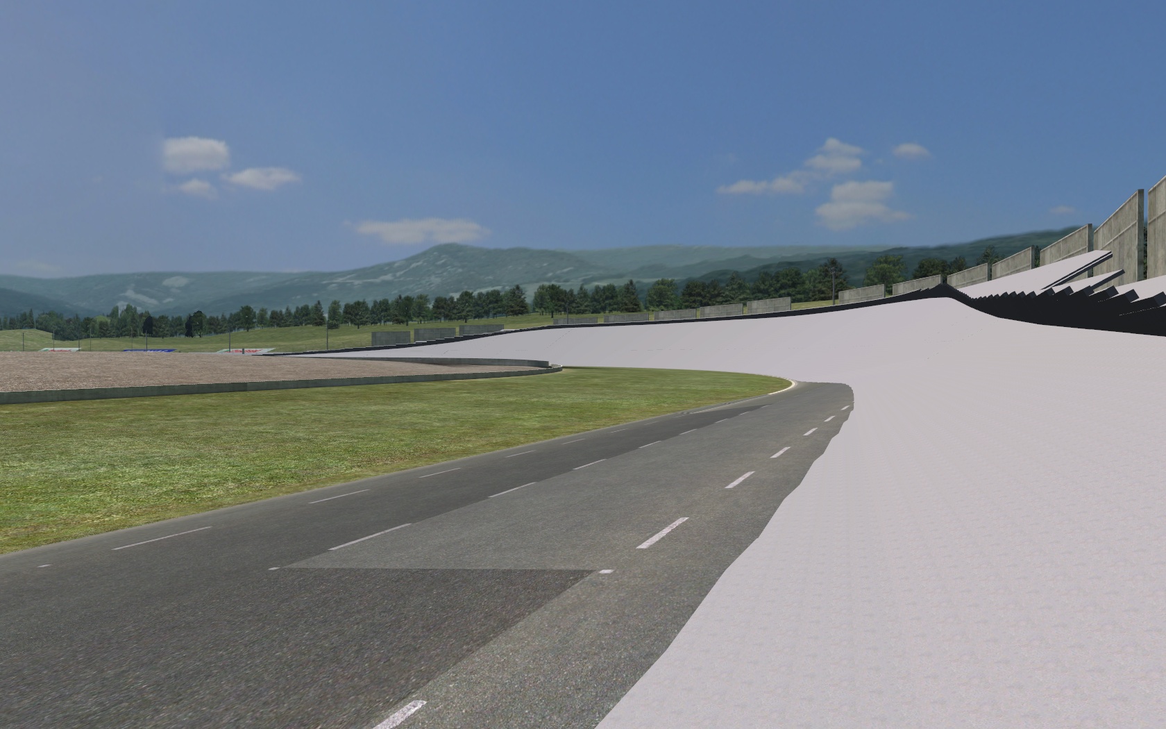 All 3 turns have increased banking to 30°. The "dogleg" before the finish line has been increased to 12°. The turns feel more bumpy, it reminds me of the old Daytona surface a little.