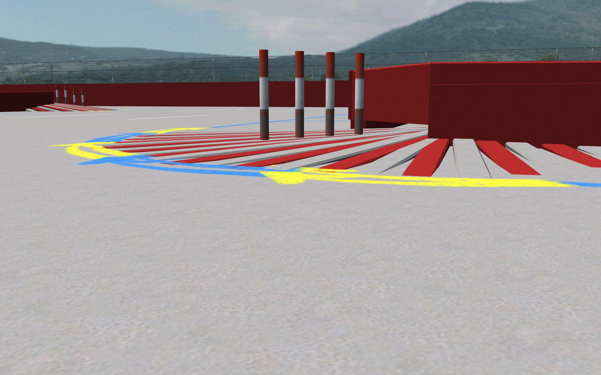 Because 25cm ramp-walls proved to be too low to motivate drivers not to jump over them. The chicane is ment to make the section more challenging and also slow down a bit instead of lead them with bigger speed right into upcoming wall at the right side of chicane exit. I tried combination of lower and higher objects to make the curbs lower in one side and higher closer to wall,but LFS layout editor resolution is just too low to make it safer to suspension. So I left the older version and added posts to mark dangerous side of curbs.