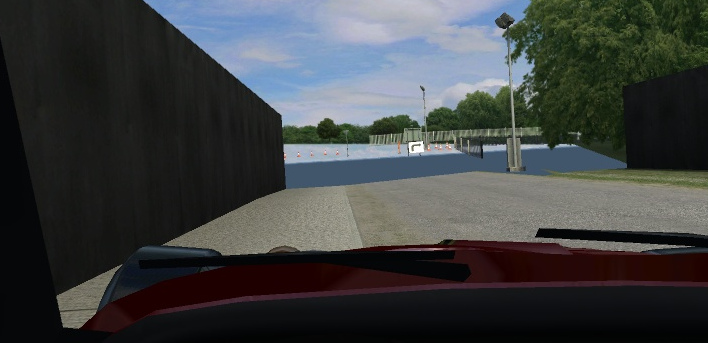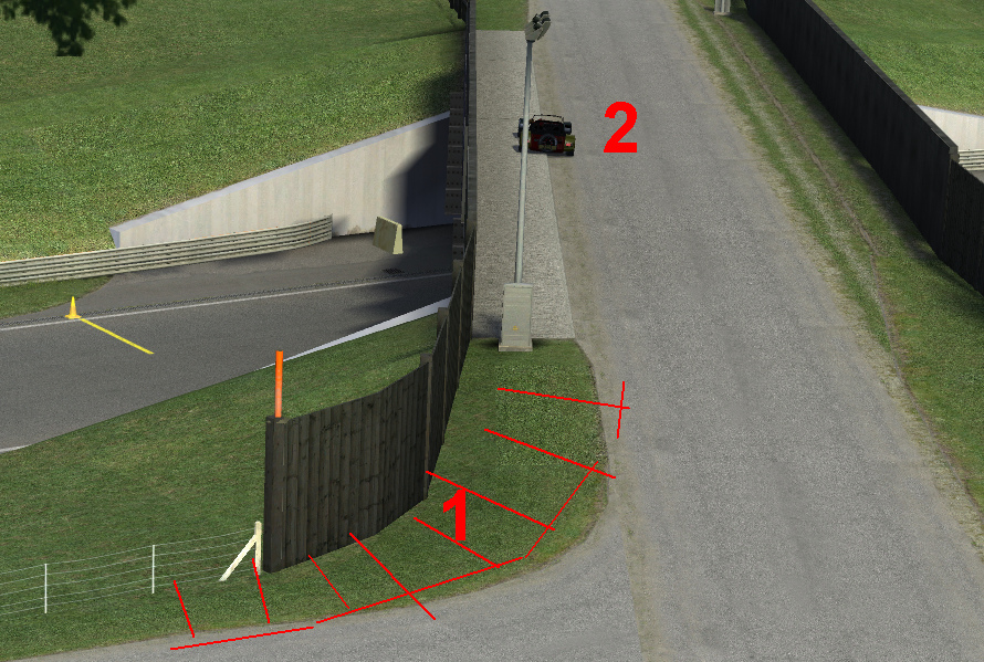 Before entering the bridge driver over grass (red marked (1) area in picture)