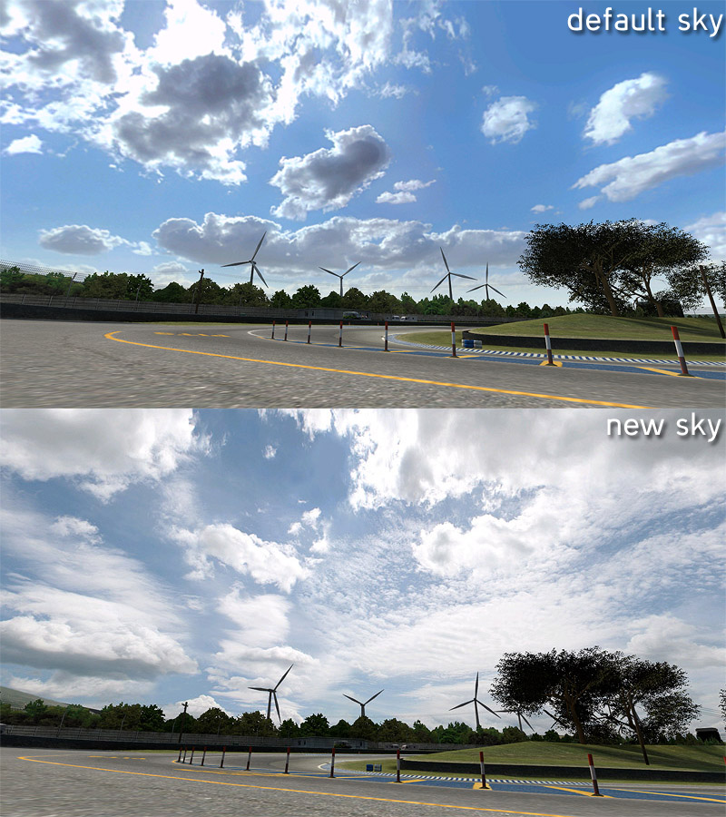 New sky for autocross sunny conditions - this time its with the usual postwork from nunomaia. 2048 like the other ones.