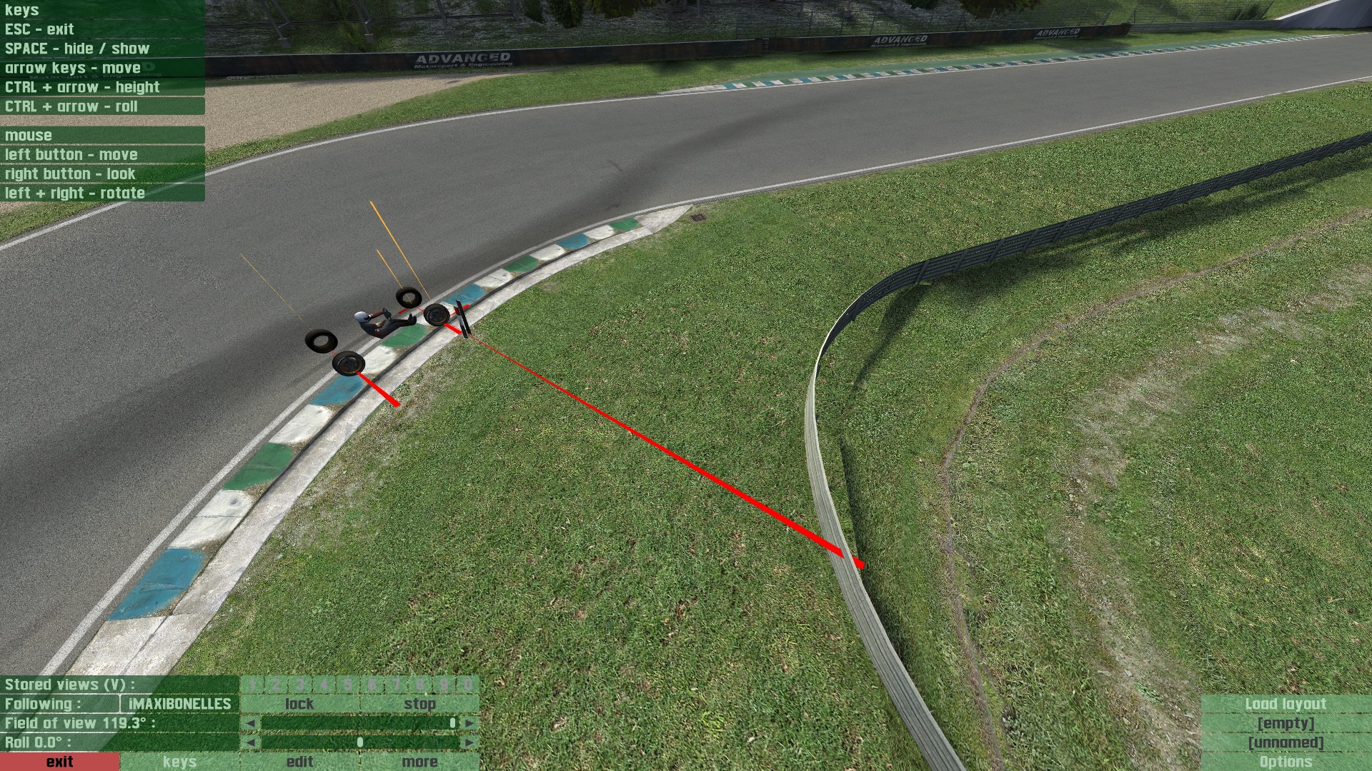 Found this first running the LX6 - this curb on Westhill International, either direction, consistently grabs the inside of the tyre and slings the car round. Happens the same with XRT as pictured, haven't tested beyond that. In forces view you can see extreme tyre deformation and a tyre mark conforming to the vertical surface of the curb.