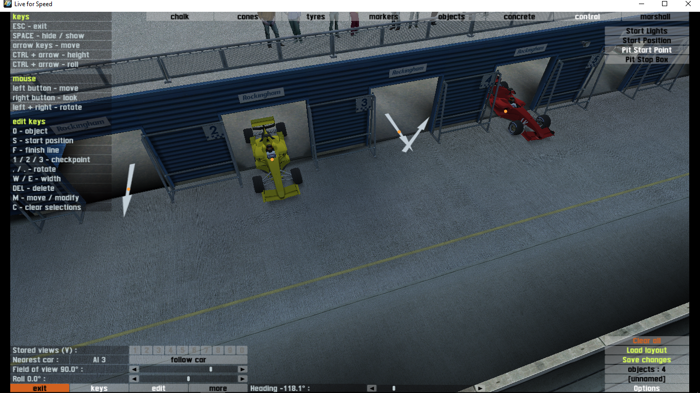Quote from Jonathon.provost :As a temporary measure, you can use the Autocross editor. Place pit start points, just outside of the garages. Place them as attached, in line with line on garage floor.