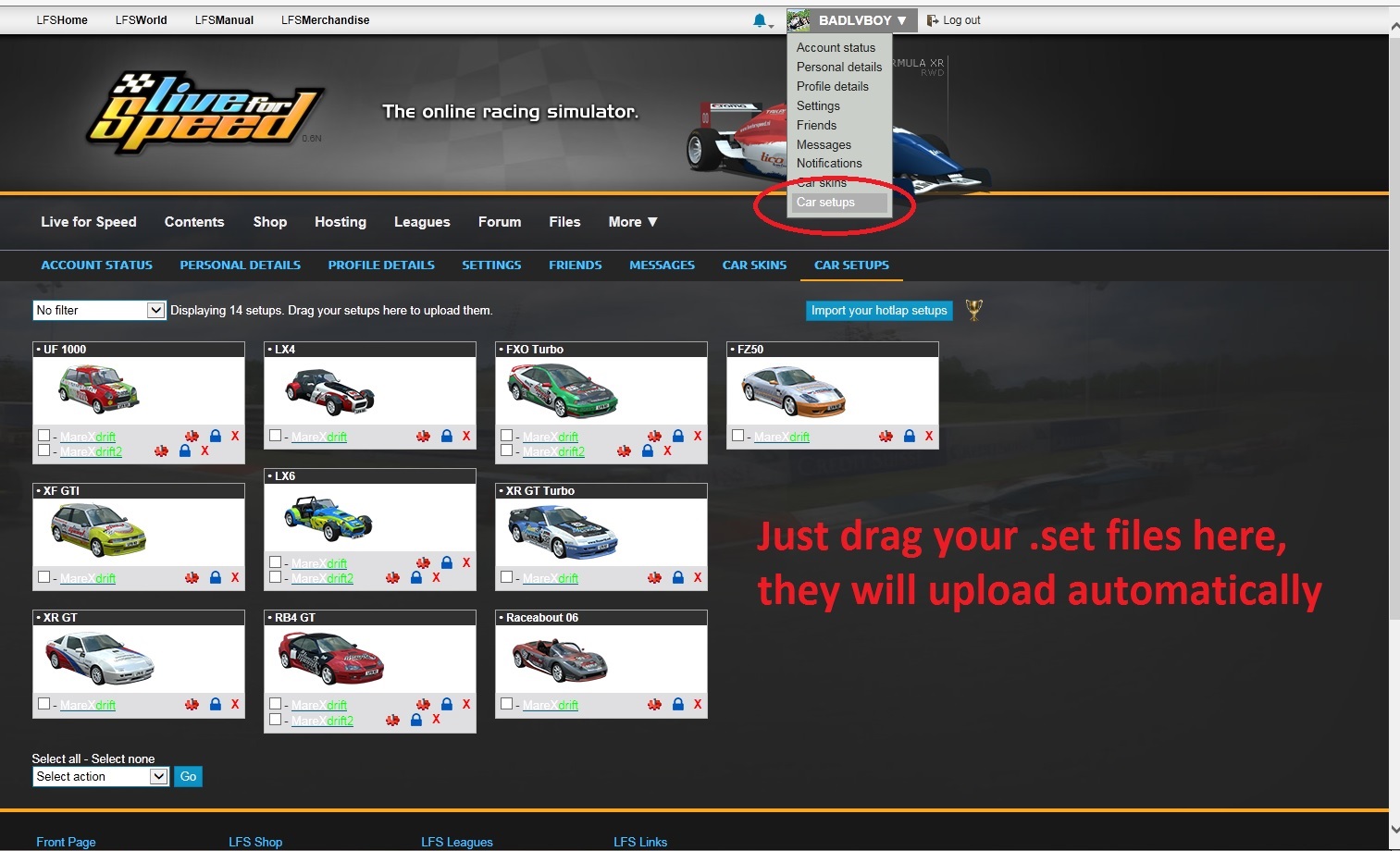 Just wanted 1 specific so4r xrg setup but i miss button too upload files Smile can import hotlap setups but would be nice too have upload button.