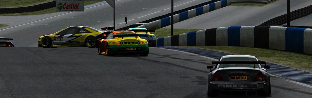 My setup was snailish down the straights, so that I was racing under a blue flag almost all night.