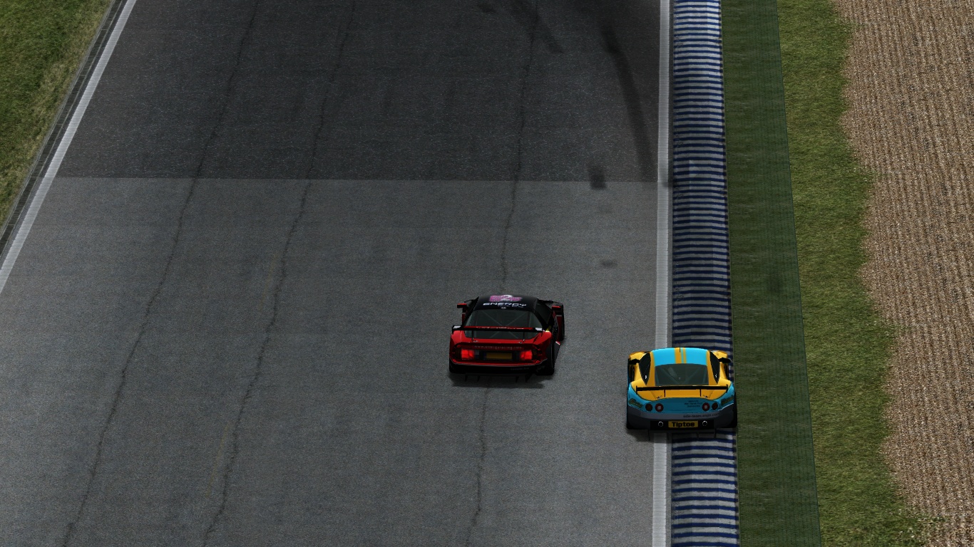 TipToe seemed bit faster but positions swapped a few times whenever someone was in grass..kinda strange race. After 90minutes we had both done pitstops andthe gap was 2,3 seconds. Then I was confident I could 'win' this, but I crashed into the tires of chicane and it the last laps were quite random who would fail less. Smile Somehow I came out in front.