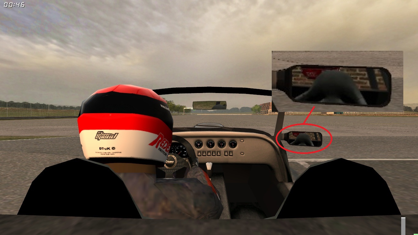 I don't like using virtual mirrors, I like having the interior mirror positioned in a certain place, and now that just gives me a mirror full of my race helmet.
