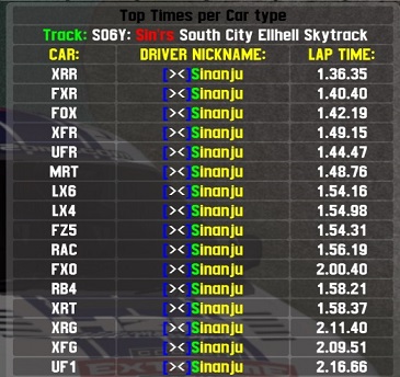 My best times (single lap sprint) ...