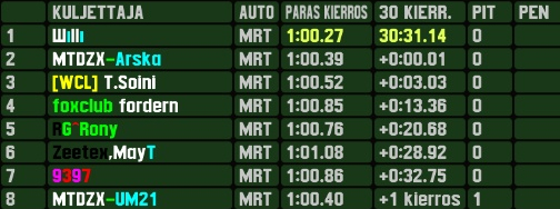 Stats and points on updated. We are going to have ROUND 3 on tuesday, on 15:45 UTC, which is 17:45 on finnish time. And having another race on next thursday called ROUND 4, this time 19:00 UTC...
